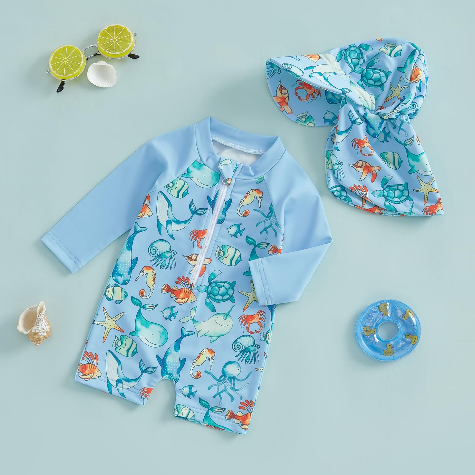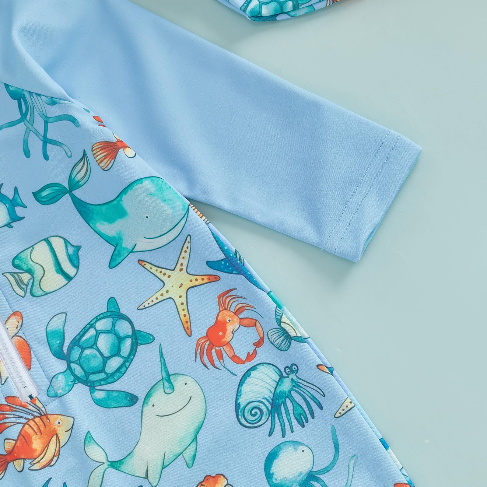 Design: Toddler bathing suit boy, infant long sleeve swimsuit boy, round neck, back/front zipper closure for easy on and off, newborn swimsuit boy, dinosaur/marine animal print, super cute and lovely, your little boy will stand out in the crowd