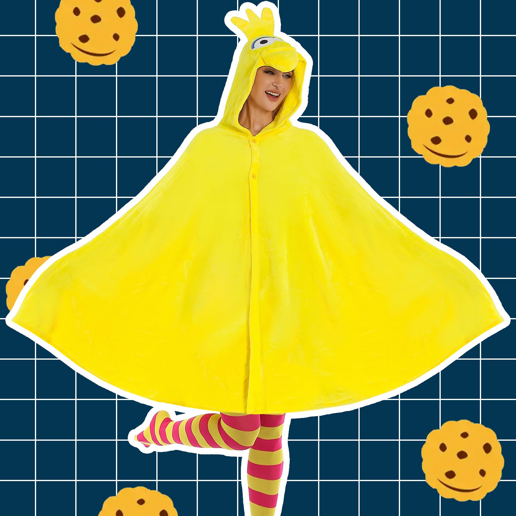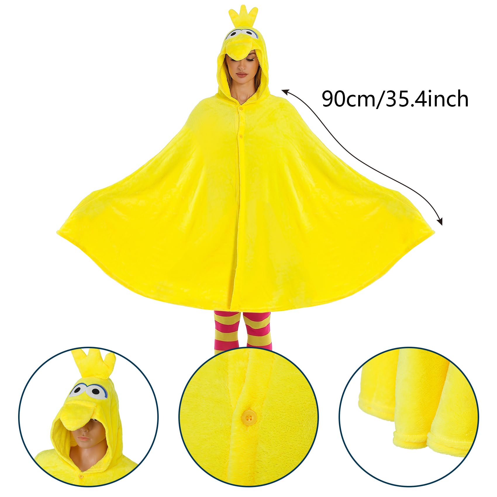 Description Halloween Cozy Bird Costume Adult Women Bird Cosplay Set Hooded Cape Striped Thigh High Socks for Halloween cartoon Character Cosplay