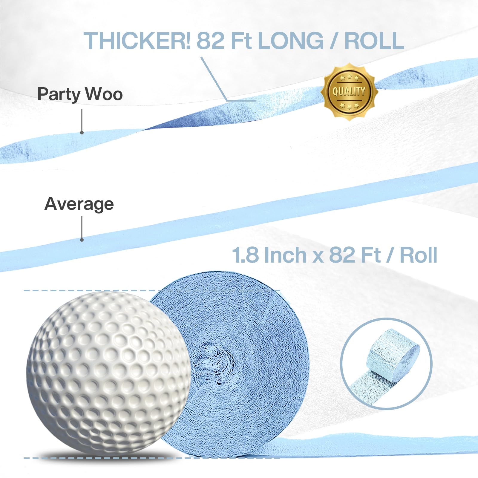 Package Included:You will receive 4 precisely rolled crepe paper in light blue colors, each roll is 1.8 inch x 82 ft, these crepe paper streamer rolls are enough for your baby shower decorations, wedding decorations and engagement decorations needs