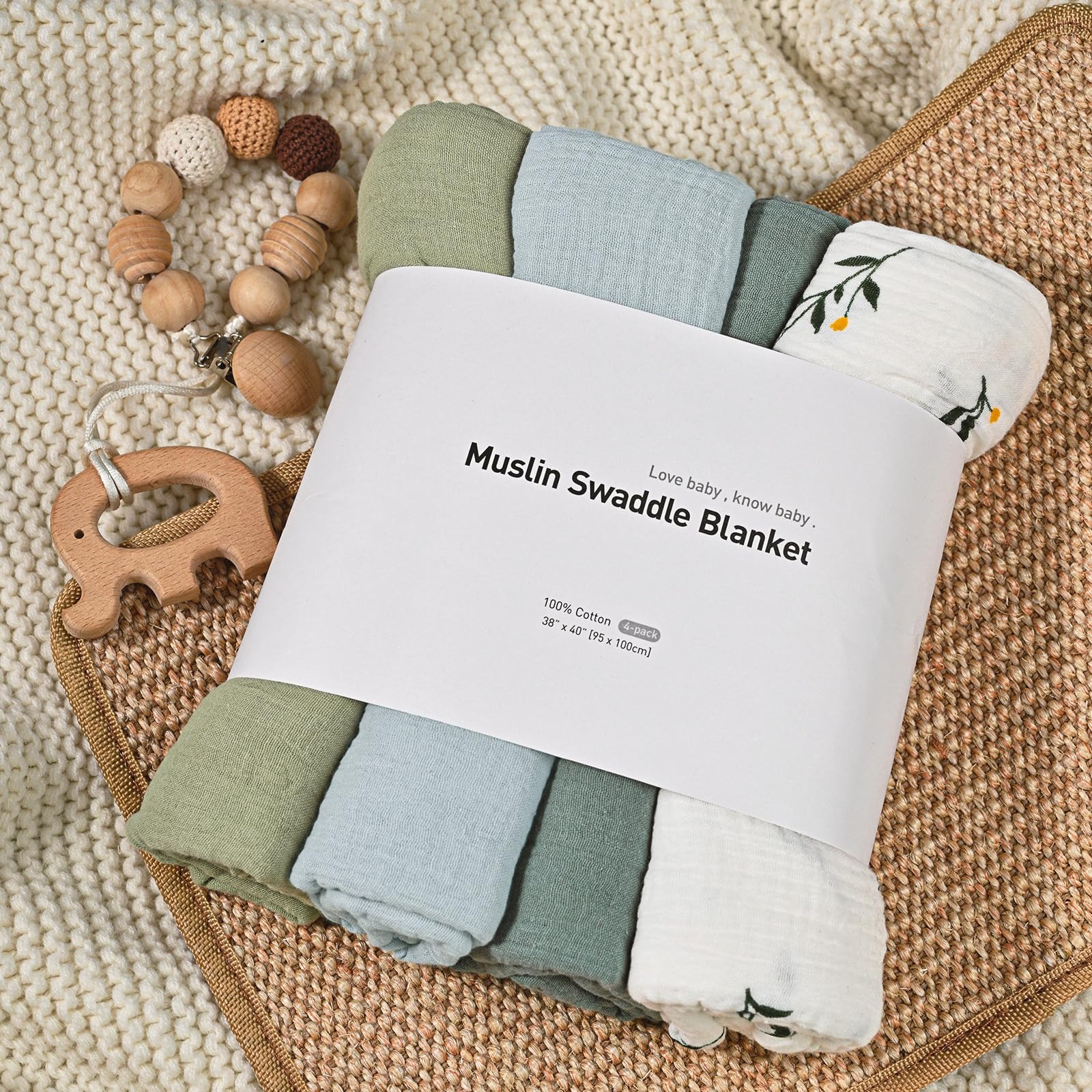 SOFT & BREATHABLE: Our muslin swaddle blankets are made of 100% cotton (Muslin). The best pure natural material without harmful chemicals for babies, providing maximum breathability with skin-friendly soft touch, which is gentle on baby's skin. And means they can keep your little one warm and cozy in cooler weather, allowing their skin to breathe in warmer weather