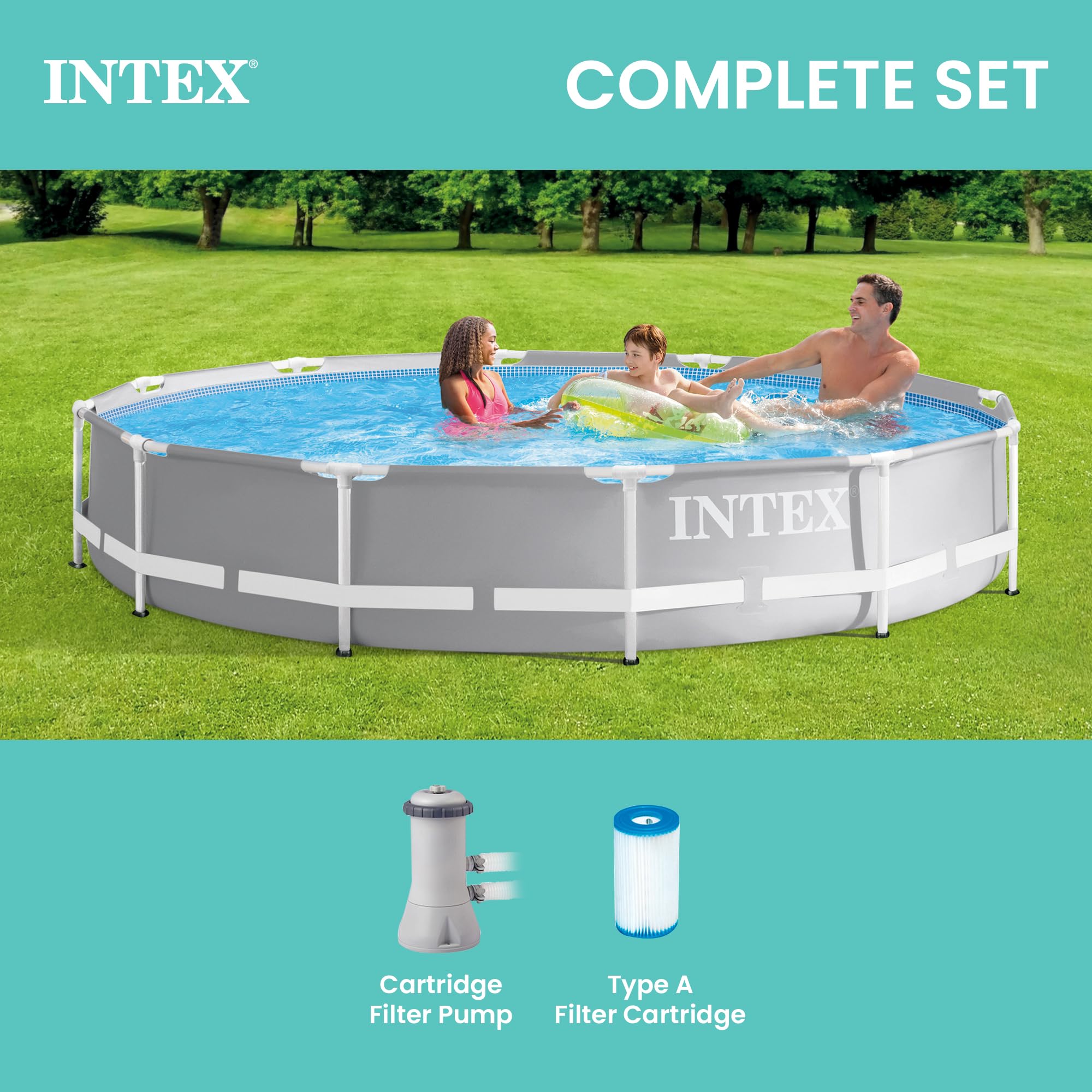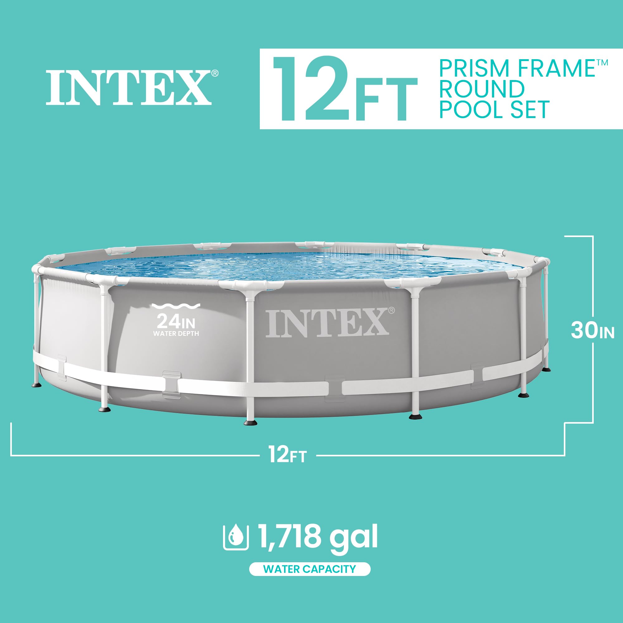 The Perfect Size: This round pool measures 12-feet in diameter with a 30-inch depth; holding up to 1,718 gallons of water; this above-ground pool is just right to have summer fun while escaping the heat