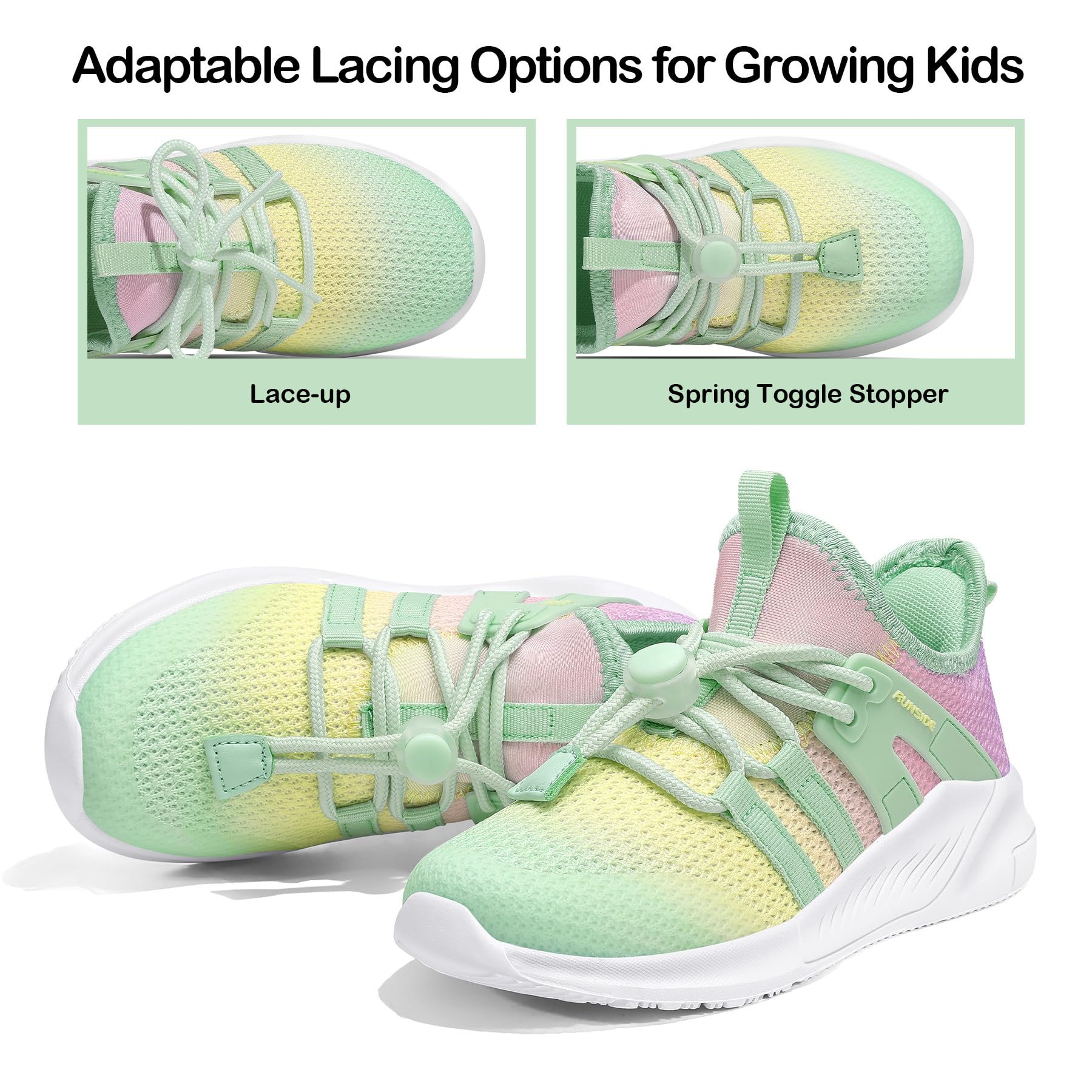 Eye-catching Color: Let your child stand out on the playground with our vibrant gradient color that captures their energetic spirit; The stylish blend of colors is sure to make these shoes a favorite in their wardrobe