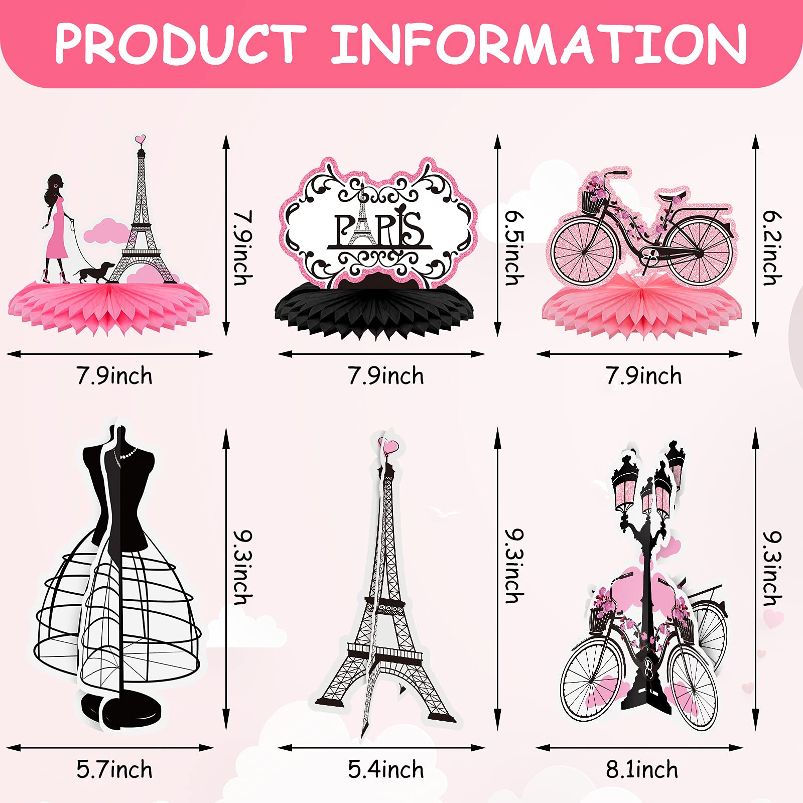 Package includes: you will get 7 pieces of Paris honeycomb centerpieces, come with 3 pieces of Paris table toppers, 10 pieces in total, all off them are in different designs; Sufficient quantity and designs can meet you various decorative demands