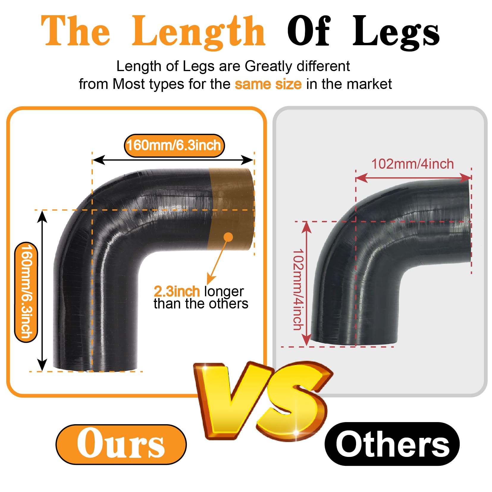 Inner Diameter: 4.0"(102mm).Length: 120mm one leg. Thickness: 5MM