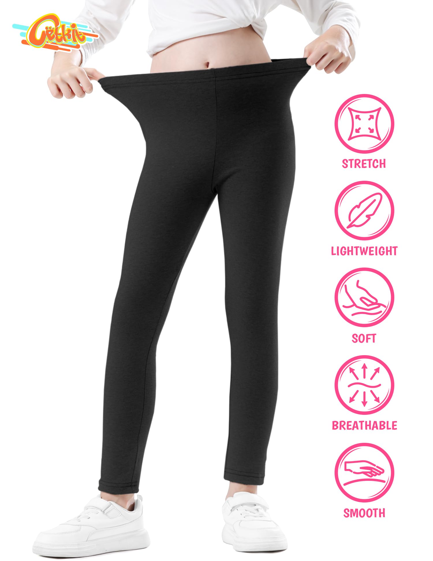 【High-Quality Toddler Girl Leggings】 These girls' leggings are made of 94% cotton and 6% spandex. The fabric is stretchy, ultra-soft, and breathable, making these toddler leggings 3t very comfortable and flexible. black Pants for girls leggings are made from premium four-way stretch fabric, with an elastic band sewn into the waistband, which lies flat on the waist for a comfortable and good fit.
