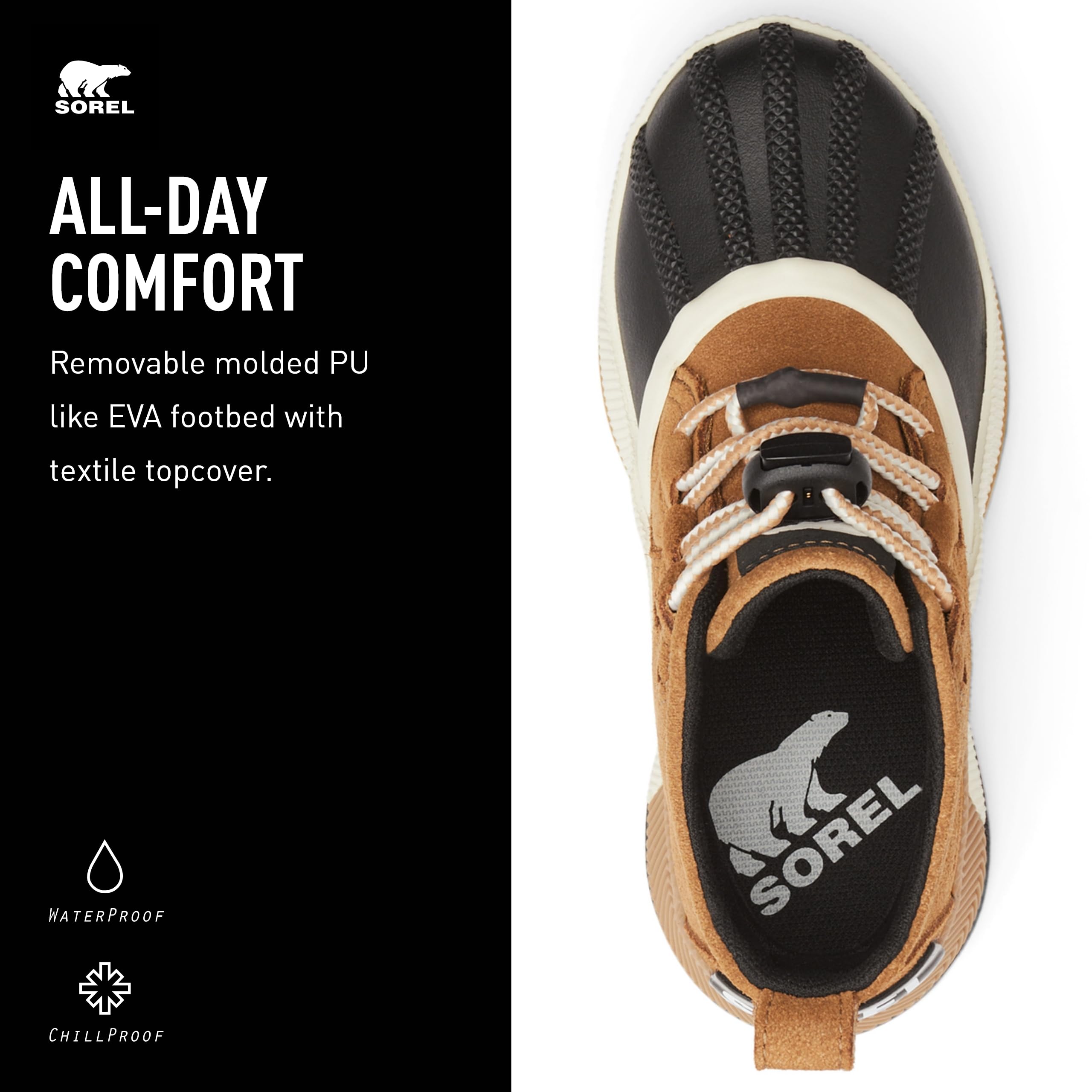 Description Get ready to take on any rainy-day adventure with the Youth Out 'N About Classic Waterproof Boots from SOREL. These Boots are a must-have for any girl who loves to explore, no matter the weather conditions. With a waterproof suede upper and waterproof Bootie construction, your feet will stay dry and comfortable all day long. The easy on-off lace design makes these Boots a breeze to put on and take off, while the internal PU midsole with vulcanized rubber foxing tape provides support and stability for all-day comfort. The textile lining adds an extra layer of warmth and comfort, while the high-quality lug sole provides abrasion resistance and excellent traction. These Boots are not just practical, but also stylish. The ergonomic design of these Boots makes them easy to pair with fall and winter outfits, and the nylon heel pull tab adds an extra touch of convenience. Founded in 1962, SOREL combines expert craftsmanship and of-the-moment design to create all-season footwear. What began decades ago with premium Boots, crafted with an unparalleled balance of construction and protection, is now a brand dedicated to both functionality and fashion. Here at SOREL, we believe you are your most powerful tool and the determination you find within is an unstoppable force. SOREL challenges the status quo by creating unexpected footwear that pushes the boundaries of function-first fashion. We stay in motion so you can push yourself forward.