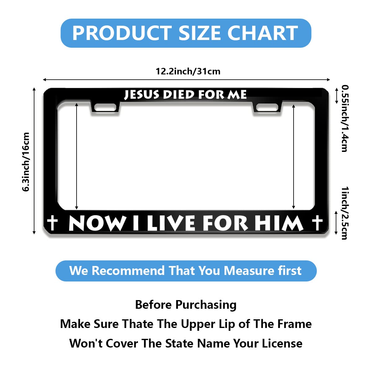 【Size】The license plate frame size is about 12 inches x 6 inches, it fits most American and Canadian car license plates.