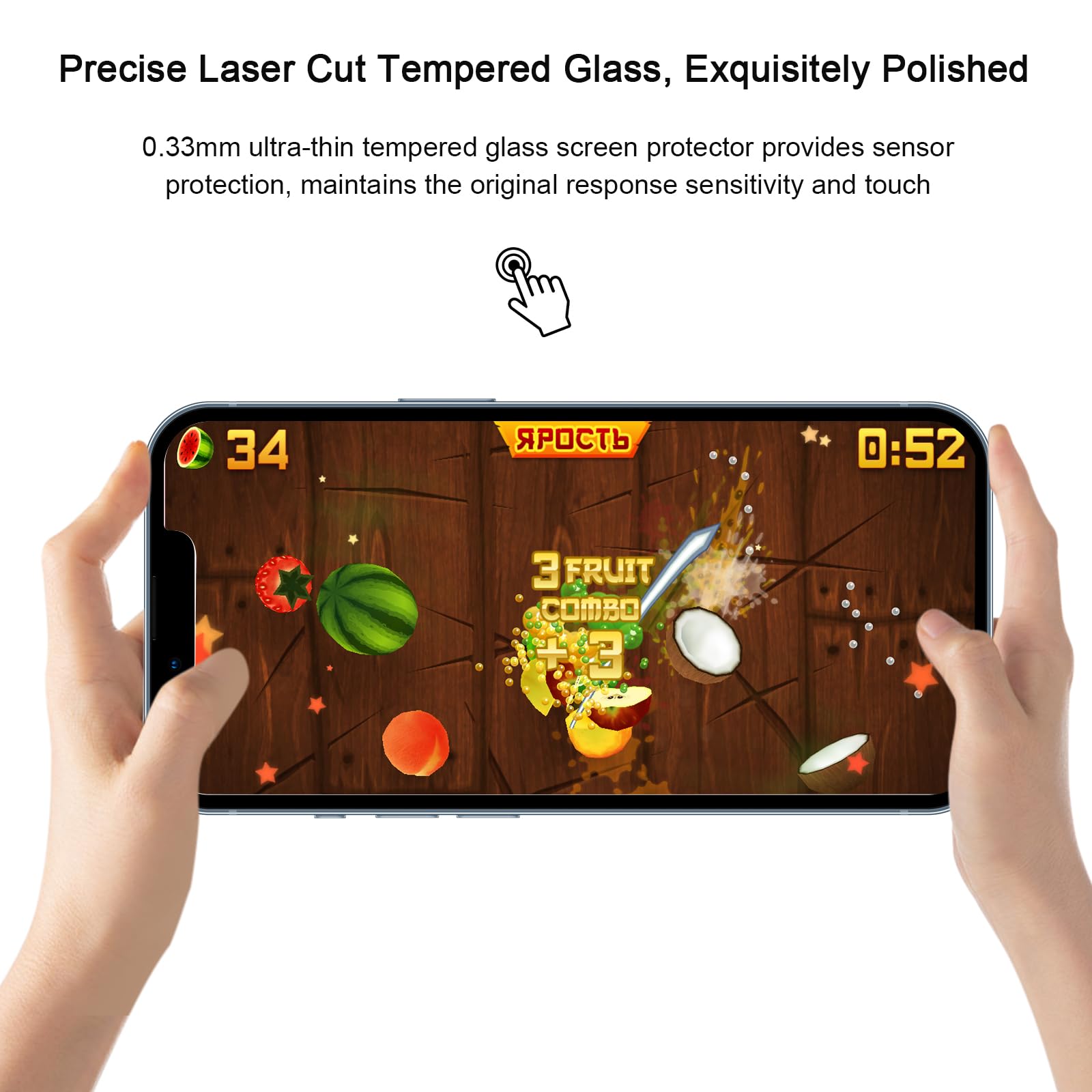 Anti-Scratch, Anti-Fingerprint, High Sensitivity: 9H hardness iPhone 13 screen protector is specially tempered to strengthen the surface of the screen protector to withstand external scratches and impacts more effectively and reduce screen damage, rounded edges are integrated to maintain the original response sensitivity to keep typing fast and accurate and gaming videos smooth
