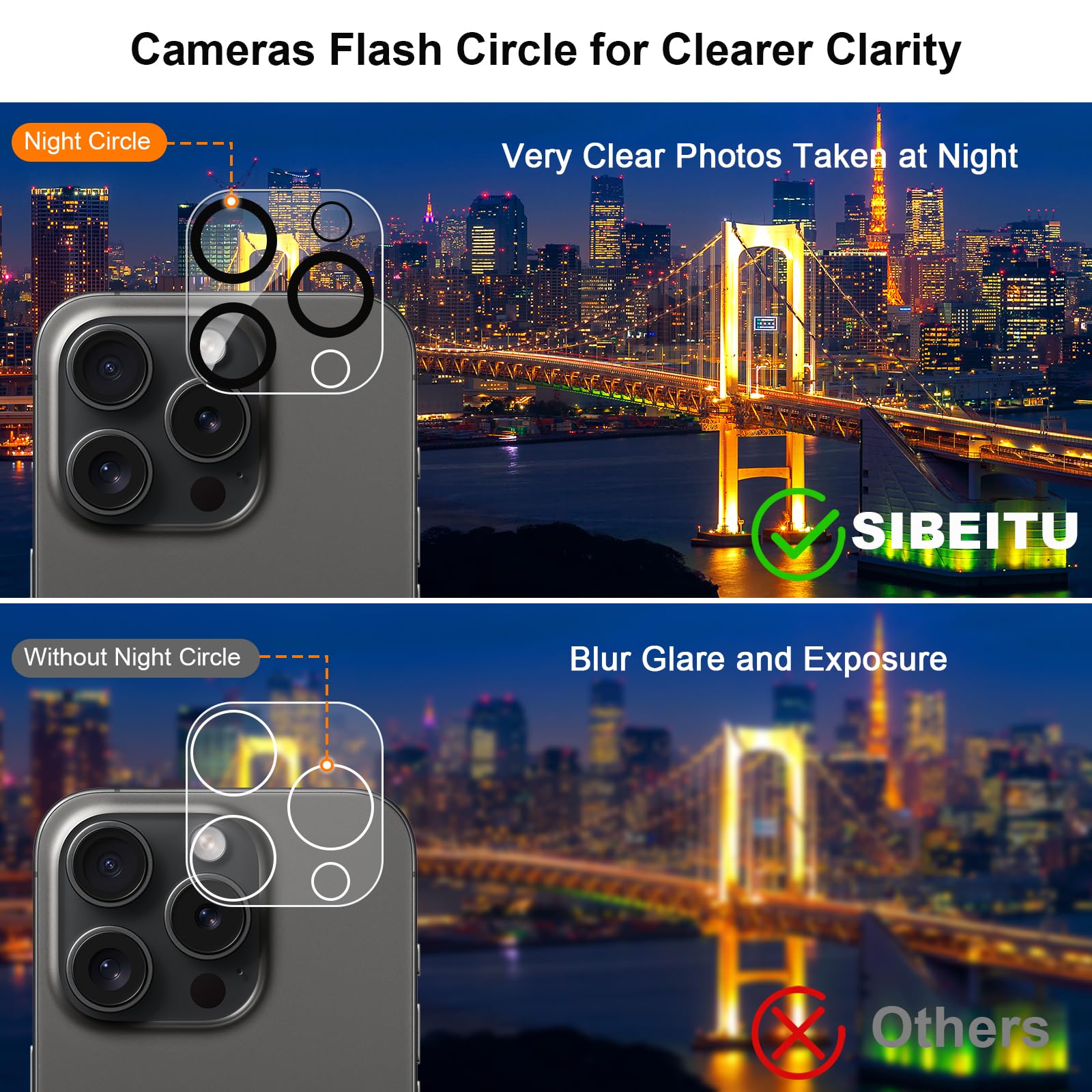 Night Ring Shooting Lens Film: Camera lens protector made of 9H hardness + tempered glass, which protects the entire lens from drops, impact scratches and peeling off. Upgraded black night circle design applies during night shooting without interfering with the flash, capturing every detail clearly thus guaranteeing the original picture quality of photo and video quality