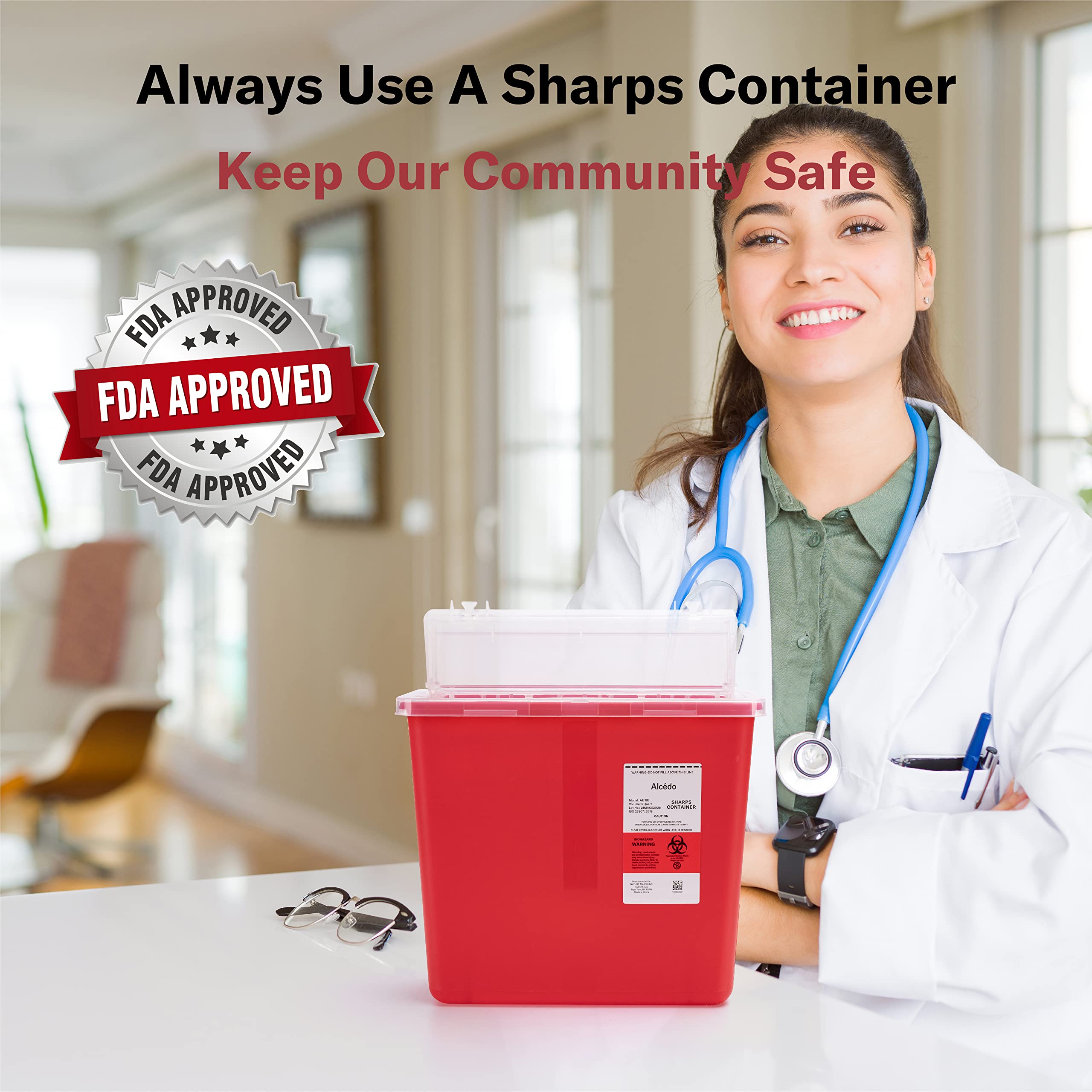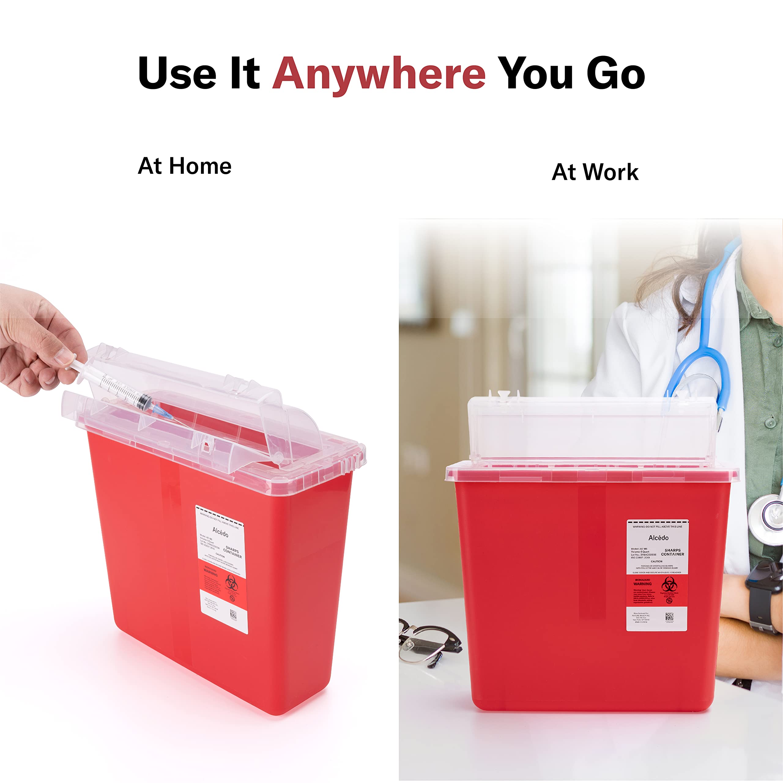 PERFECT FOR PROFESSIONAL AND HOME USE – The sharps container is ideal for use in hospitals, labs, and clinics or at home by diabetics who need a container to dispose of biohazard needles and syringes waste.