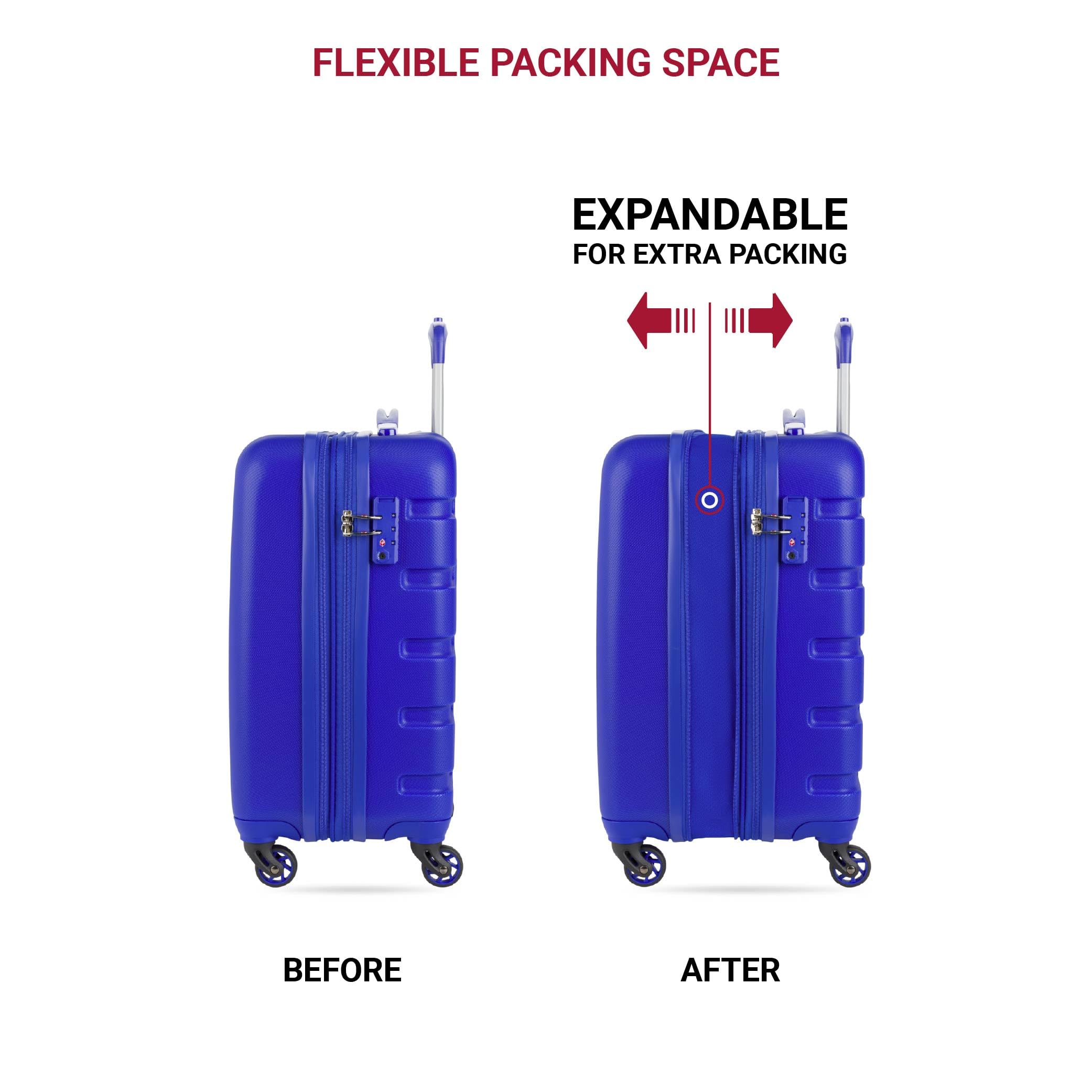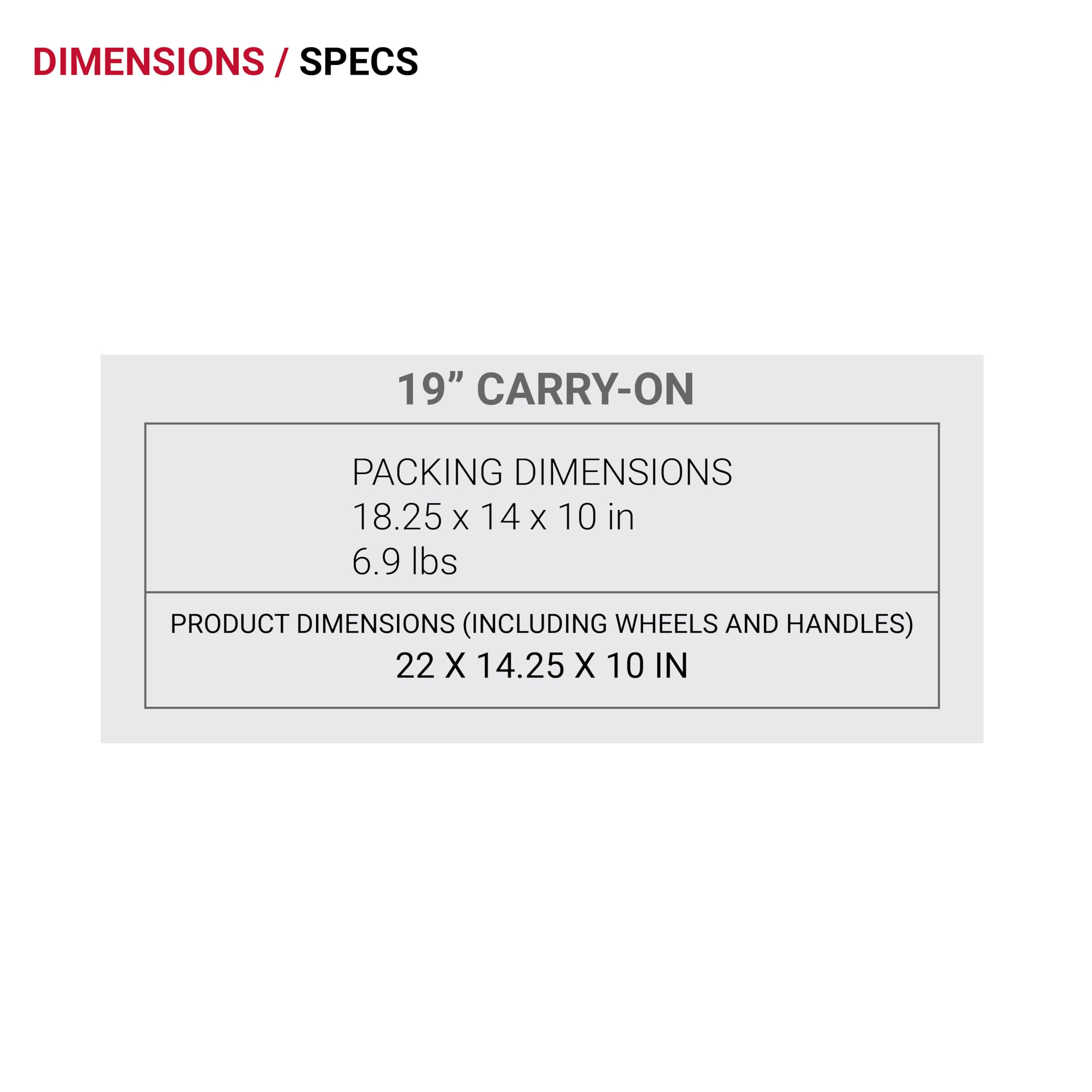 Expandable Carry-On Luggage: With 18.25 x 14 x 10 inches of packing space and a convenient fold-out cup holder, this rolling suitcase is the perfect size for any trip; At only 22 x 14.25 x 10 inches overall, it fits all your travel essentials without the extra bulk