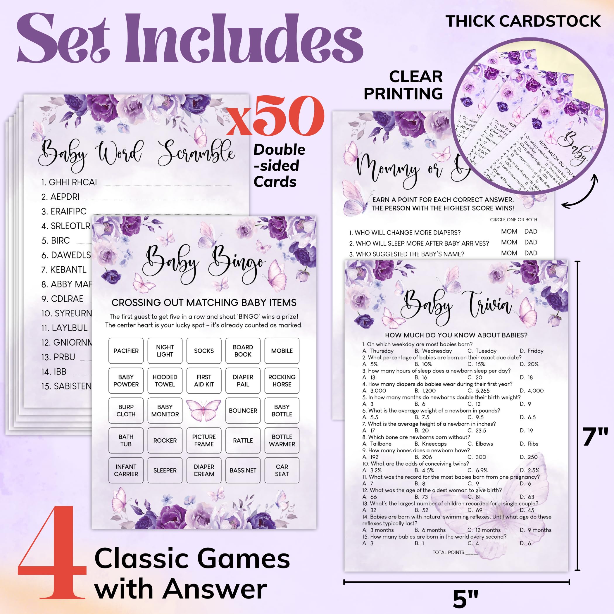 High Quality: Made with premium materials, these purple babyshower games ensure fun baby shower activities with lasting durability.