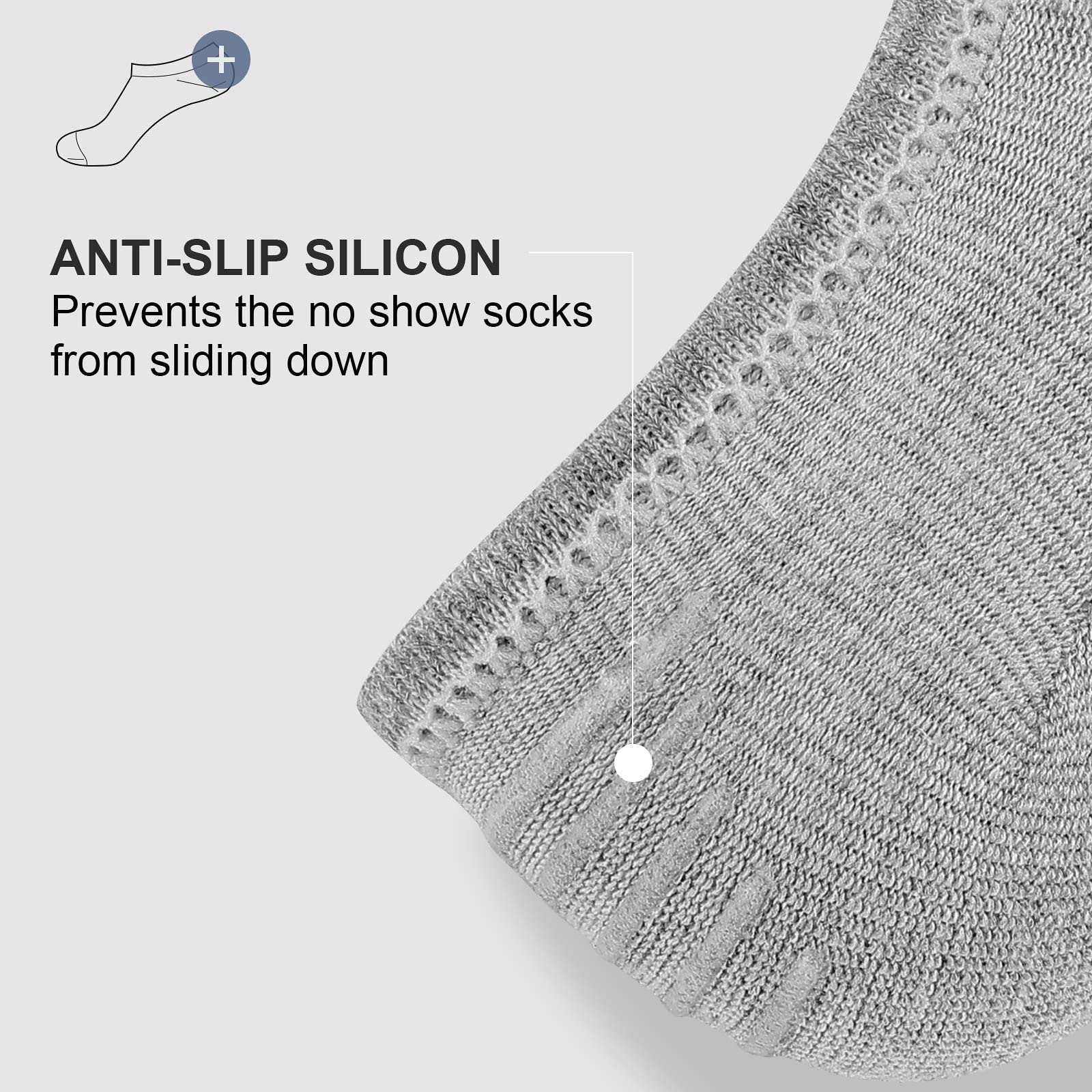 Cotton No Show Socks with 3 silicone heel grip technology ensures non-slip and your no show socks stay put all day long. M=size 6-10. L=size 11-13.