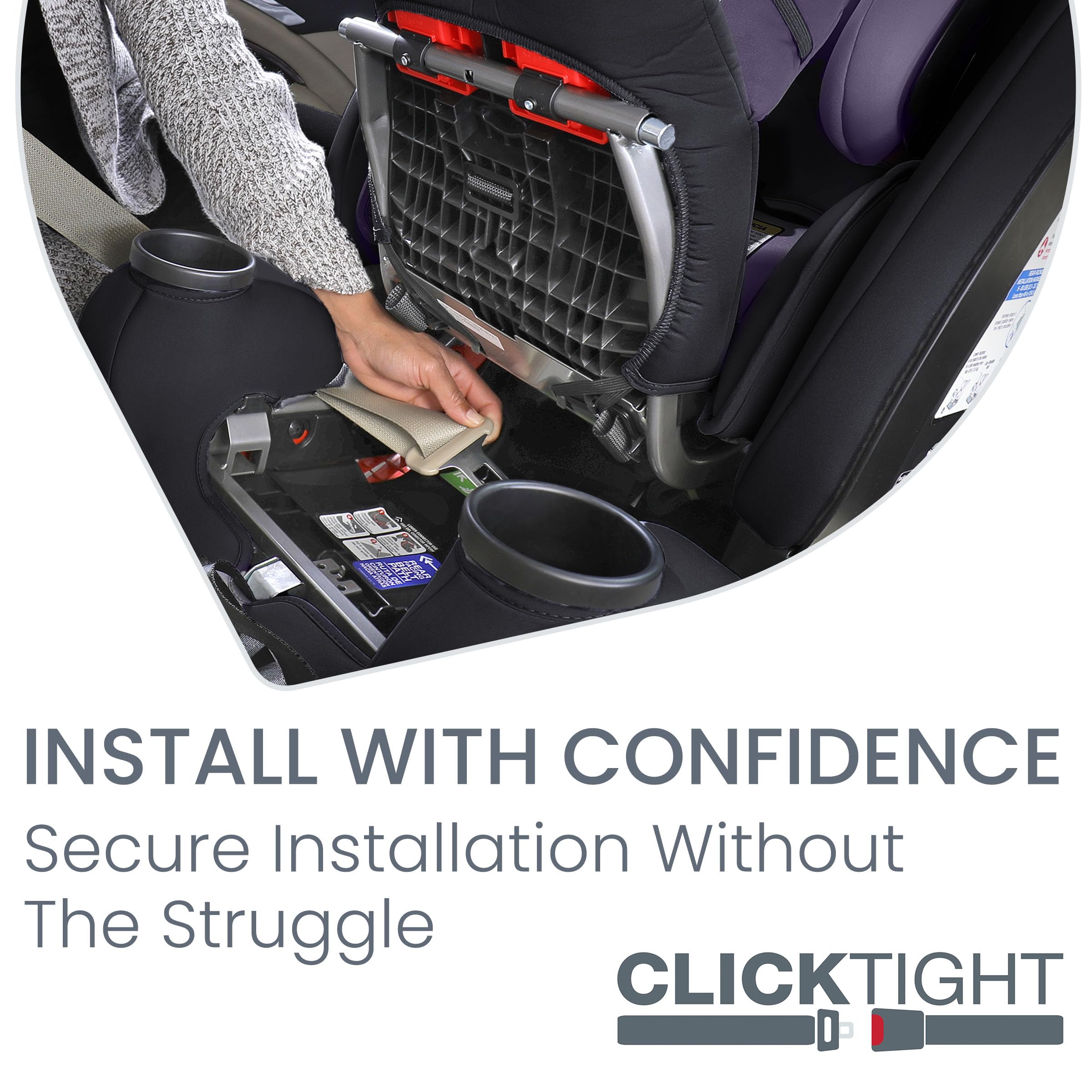INSTALL WITH CONFIDENCE: ClickTight(R) technology makes installation easy – simply open the seat, thread and buckle the seatbelt, and click the seat closed