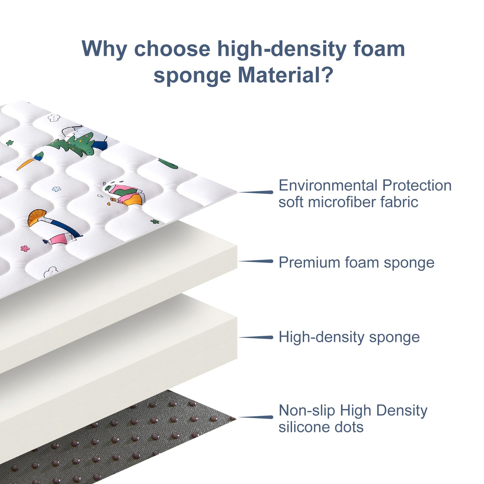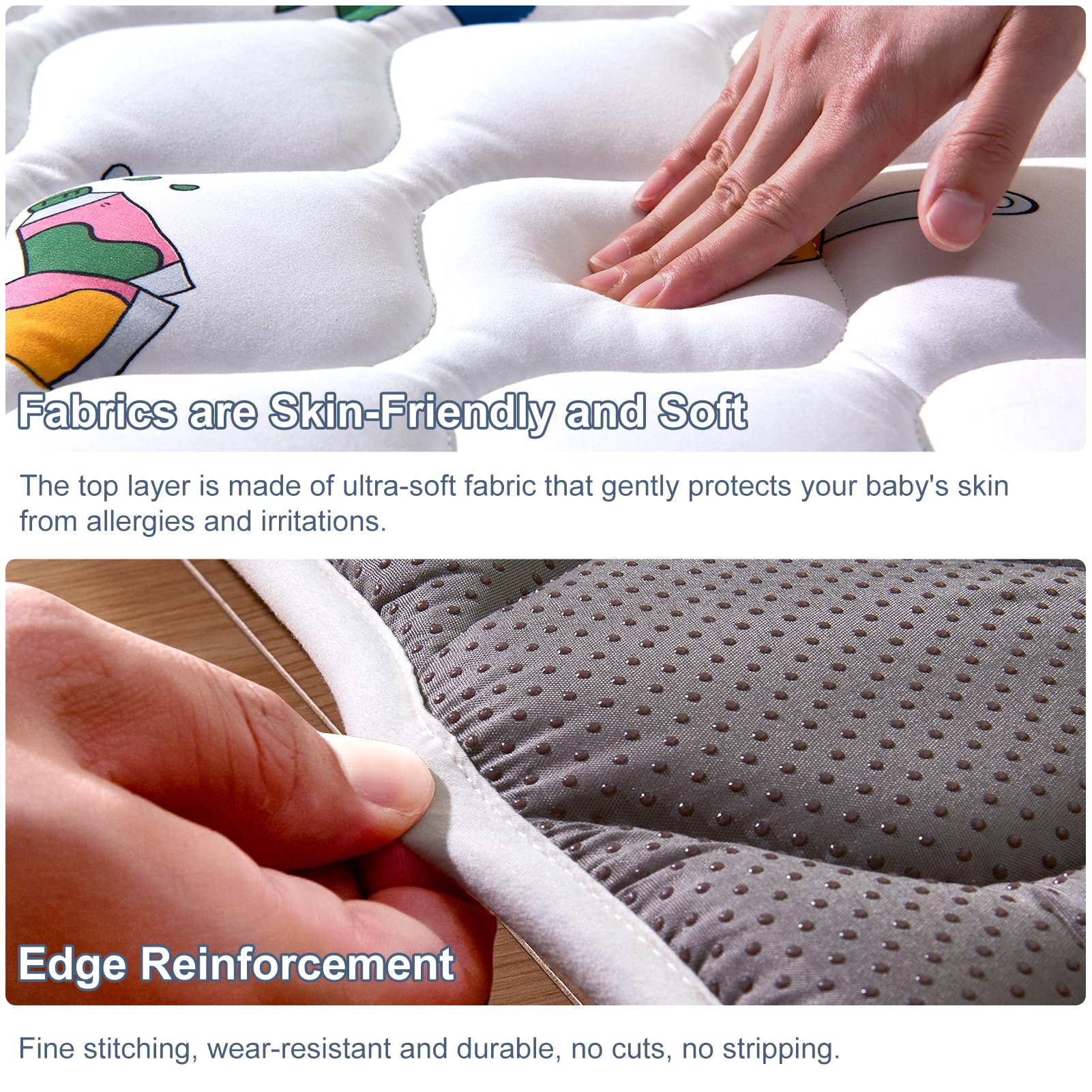 Easy to clean: No worries at all about mats stained with urine, milk, juice and other stains, our mats are machine washable and can be washed in a large washing machine and dried at low temperatures, which is very convenient, especially for busy parents.