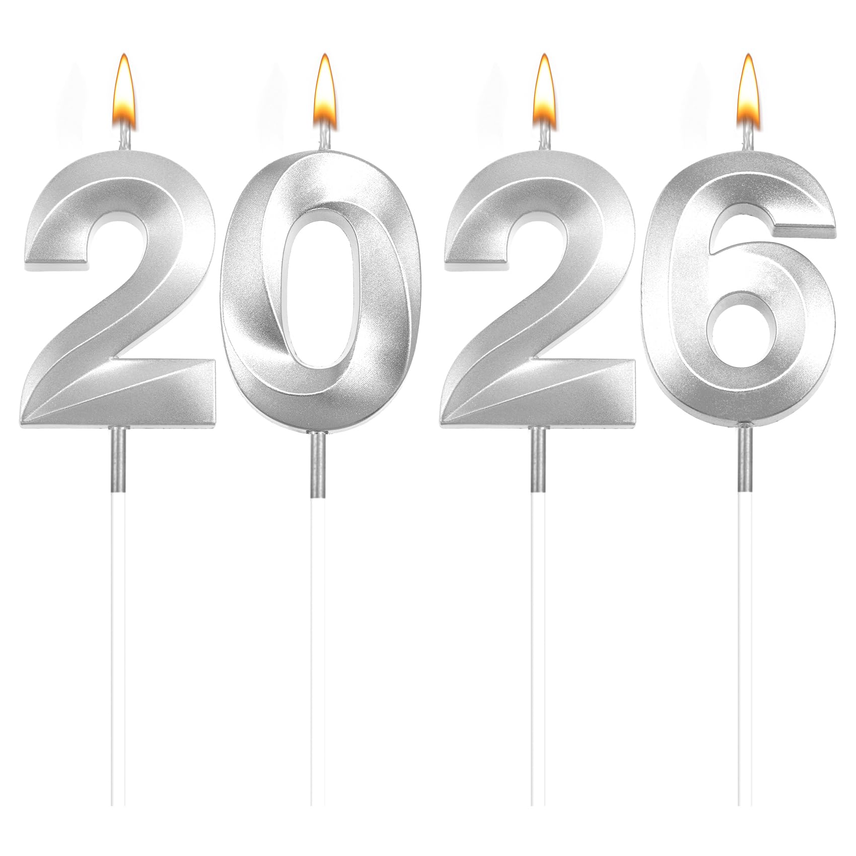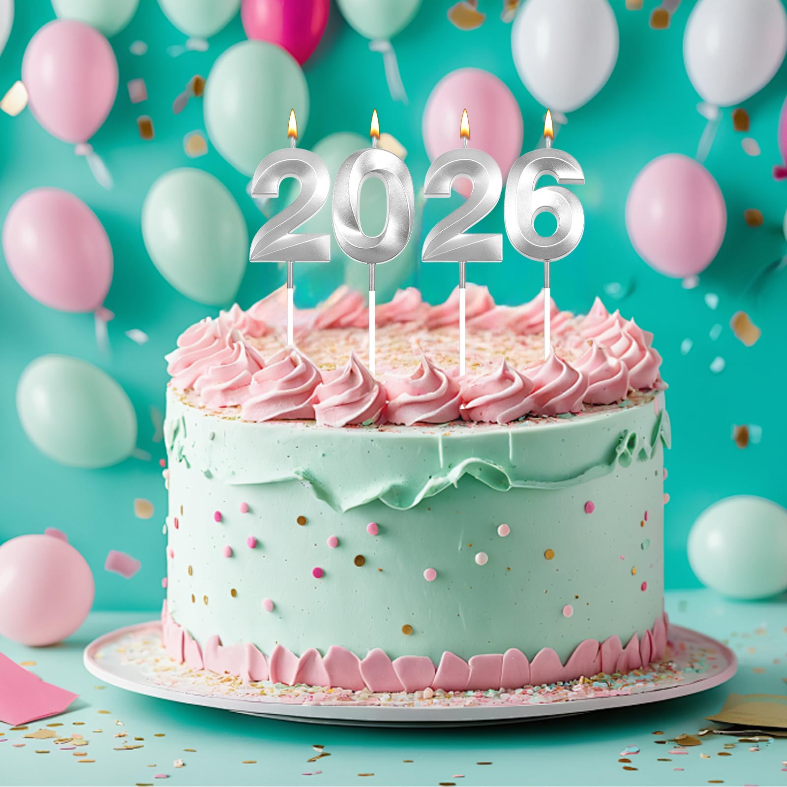 Graduation Candle 2026, 4 Pcs 3D Visual 2025 Silver Number Candles for Graduation Cake Decorations, Class of 2026 Cake Topper, 20, 22, 26, 60, 62 Birthday Candles Happy Birthday Cake Toppers