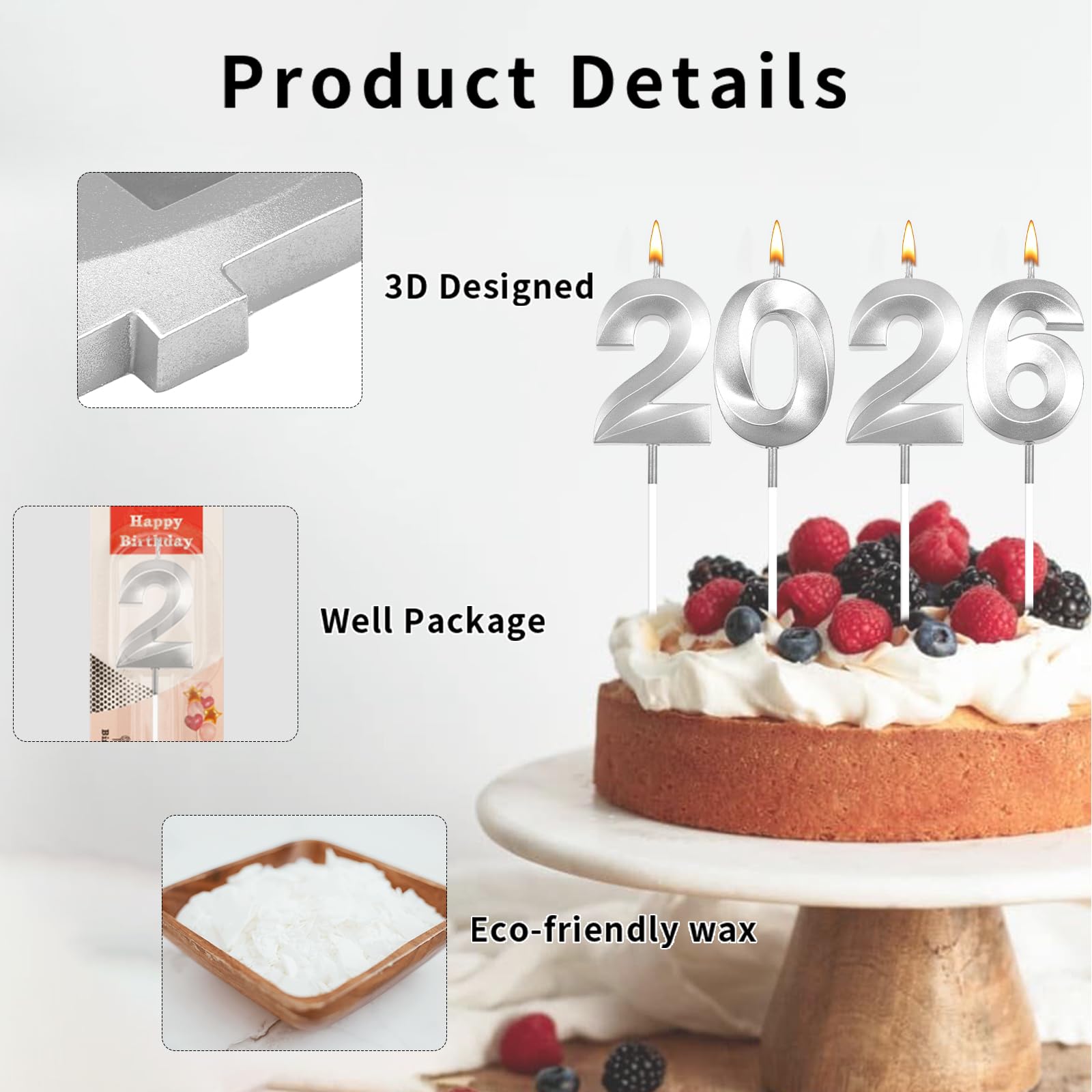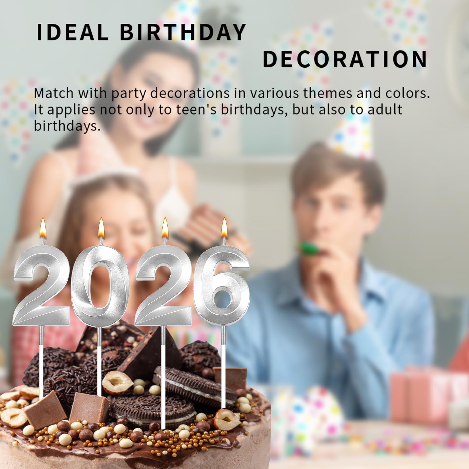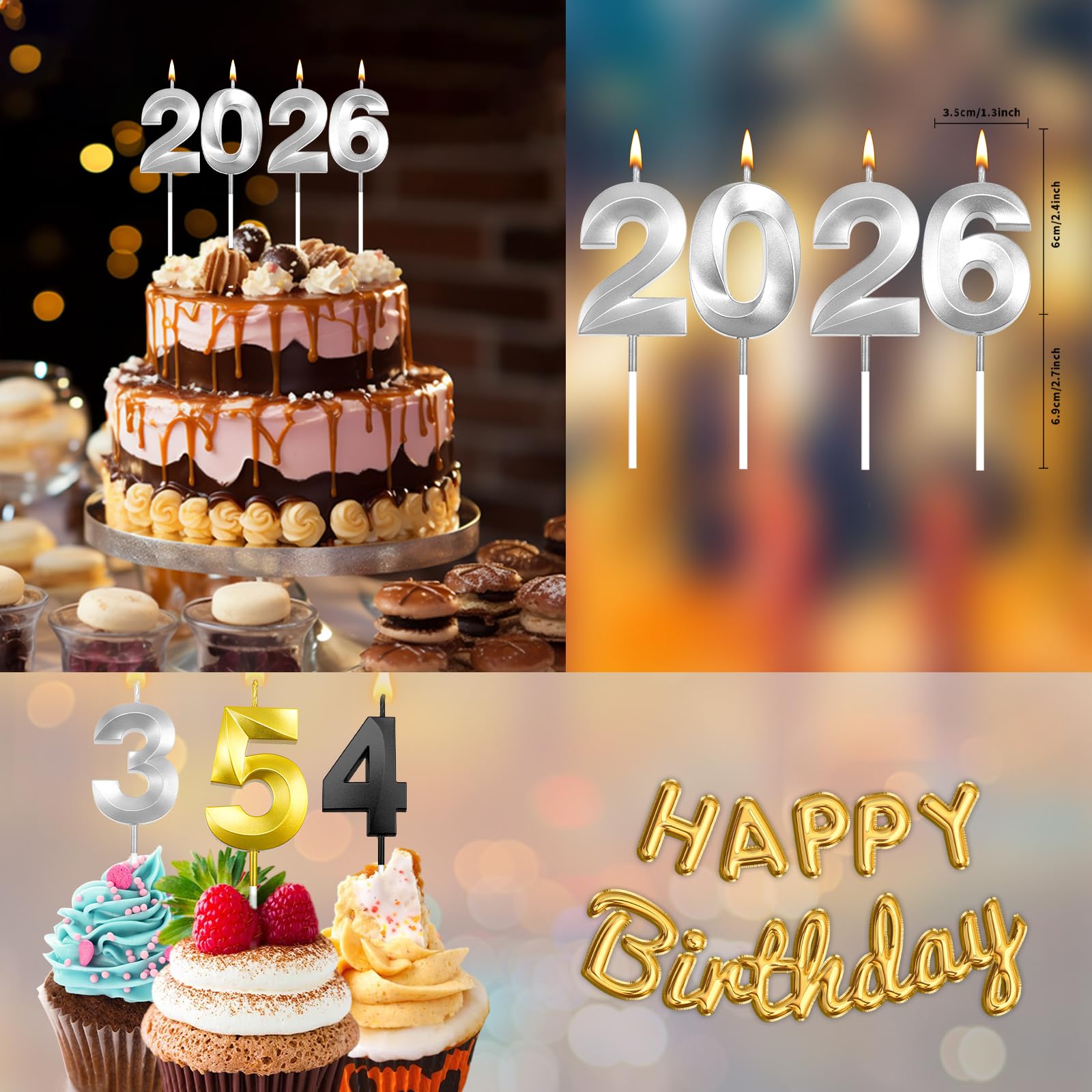 Suitable Size for 2026 cake topper: Each happy birthday cake candle measures approximately 5 cm / 1.97 inches in length, the total length (includes the candle pick) silver birthday candles special birthday candles for cake happy 2026 birthday cake topper girl 2026 birthday decorations for girl 2025 birthday decorations for girls number birthday candles for cake 2025 birthday decorations for boys girls 2026 birthday party decorations small number candles velas para pastel
