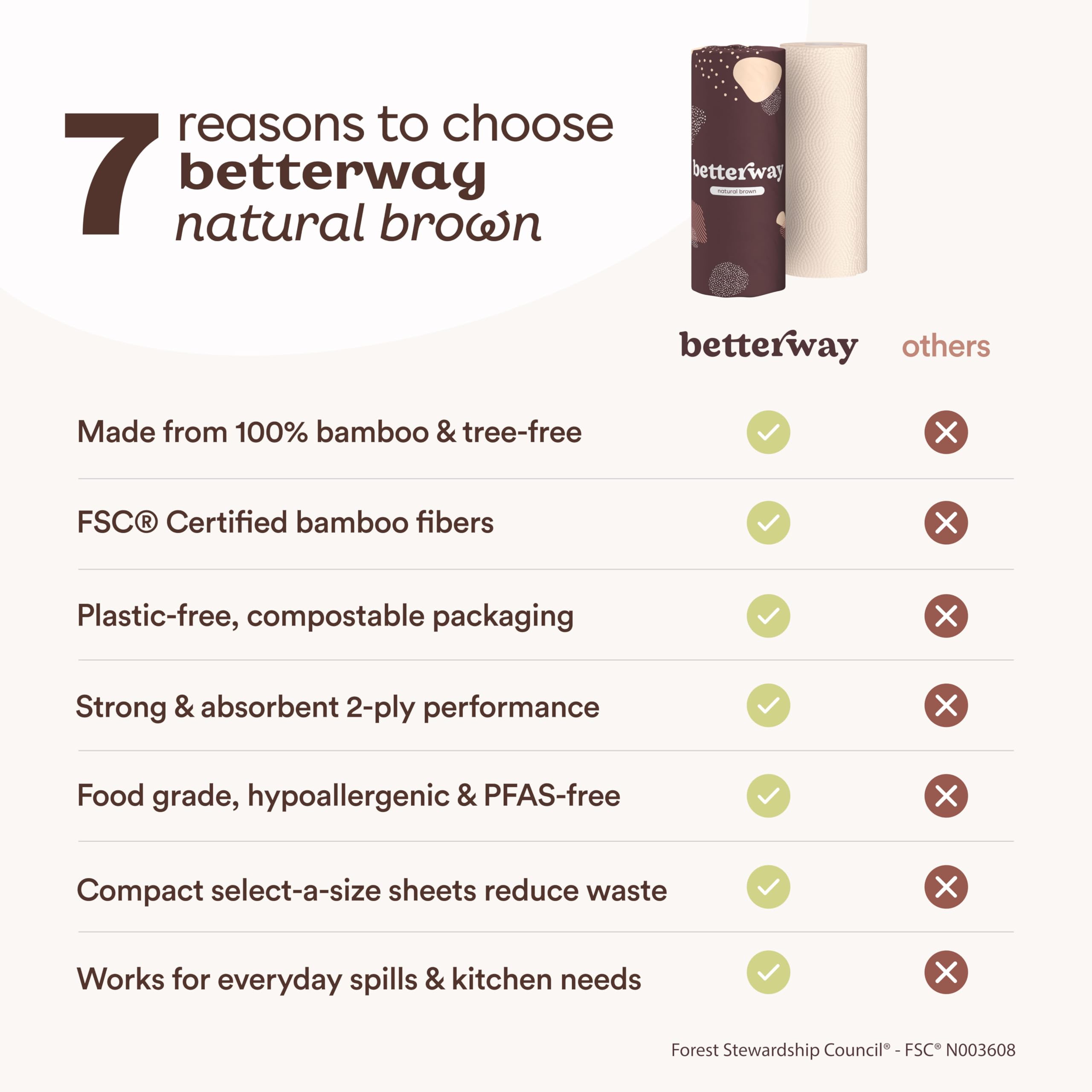 ✅ 8 Rolls. 110 Sheets Per Roll. If you ❤️ our 🌎, you'll love our FSC Certified tree-free paper towels! Each roll has 110 compact select-a-size sheets (11" x 6") to help reduce waste.