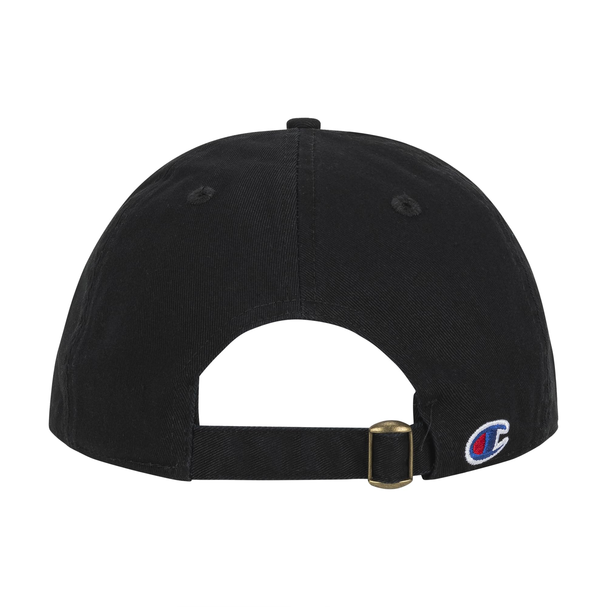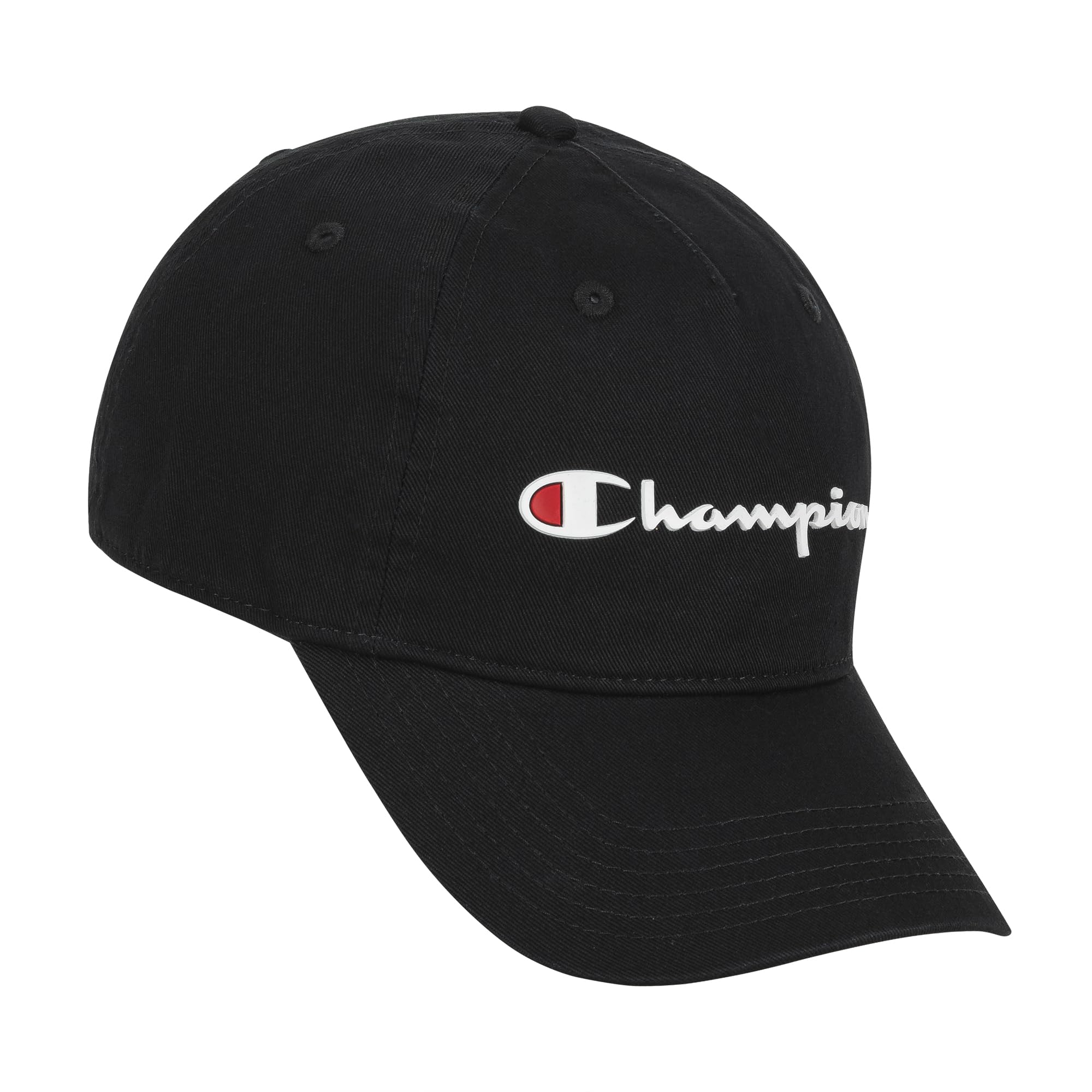Description CAP IT OFF. A classic design that never goes out of style, this Champion hat is sure to become your new favorite accessory. Made from structured brushed cotton twill, the unisex hat offers long-lasting comfort. Designed with a pre-curved bill and an adjustable back leather strap for a custom fit. The sporty design is finished with the classic script logo. Pair it with your favorite Champion gear for a casual-cool look.