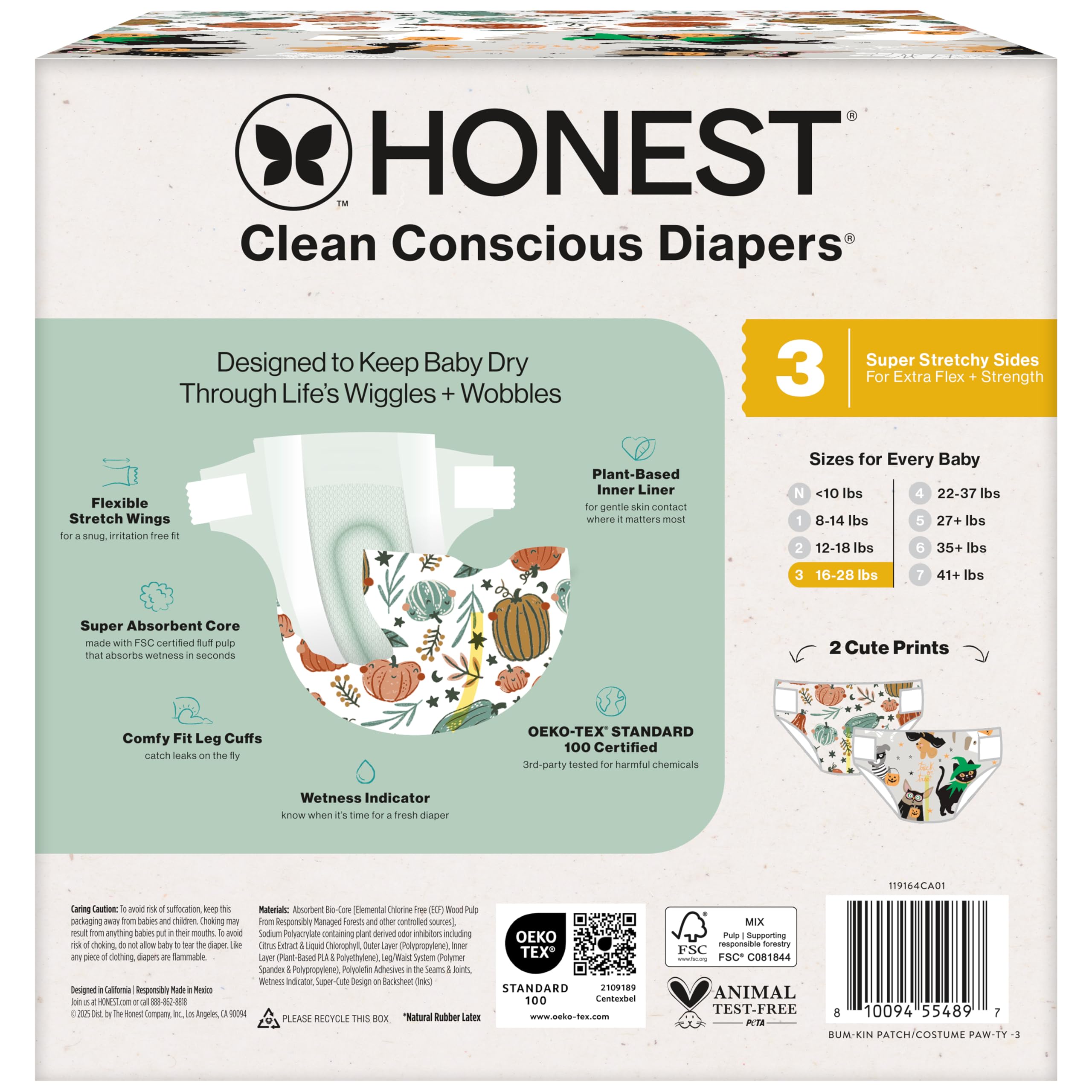 Designed to protect delicate skin, Honest Clean Conscious Diapers keep baby comfortable and dry through all the wiggles and wobbles! Our softest diaper yet delivers up to 100% leak protection with Comfort Dry Technology. The hypoallergenic, plant based inner liner, flexible stretch wings, super absorbent core, and channel technology provide a comfy, secure fit for all ages and stages. Because safety is top priority, these diapers are OEKO-TEX STANDARD 100 Certified, a 3rd party that tests for 350 harmful chemicals, and made with FSC Certified Fluff Pulp and other controlled materials. And for cuteness overload, each diaper features a super cute print!