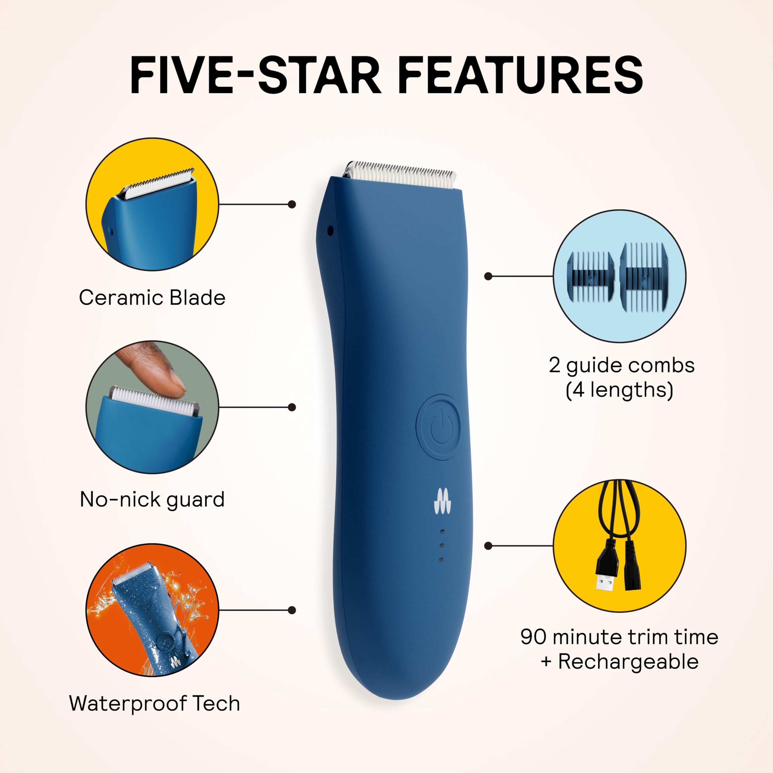 NO BURNS. NO BUMPS. NO BS: Forget the fear of nicks. Our ceramic blade trims just above the skin—no irritation, no redness, no razor burn, and no ingrown hair. It’s smooth sailing from top to below the belt.
