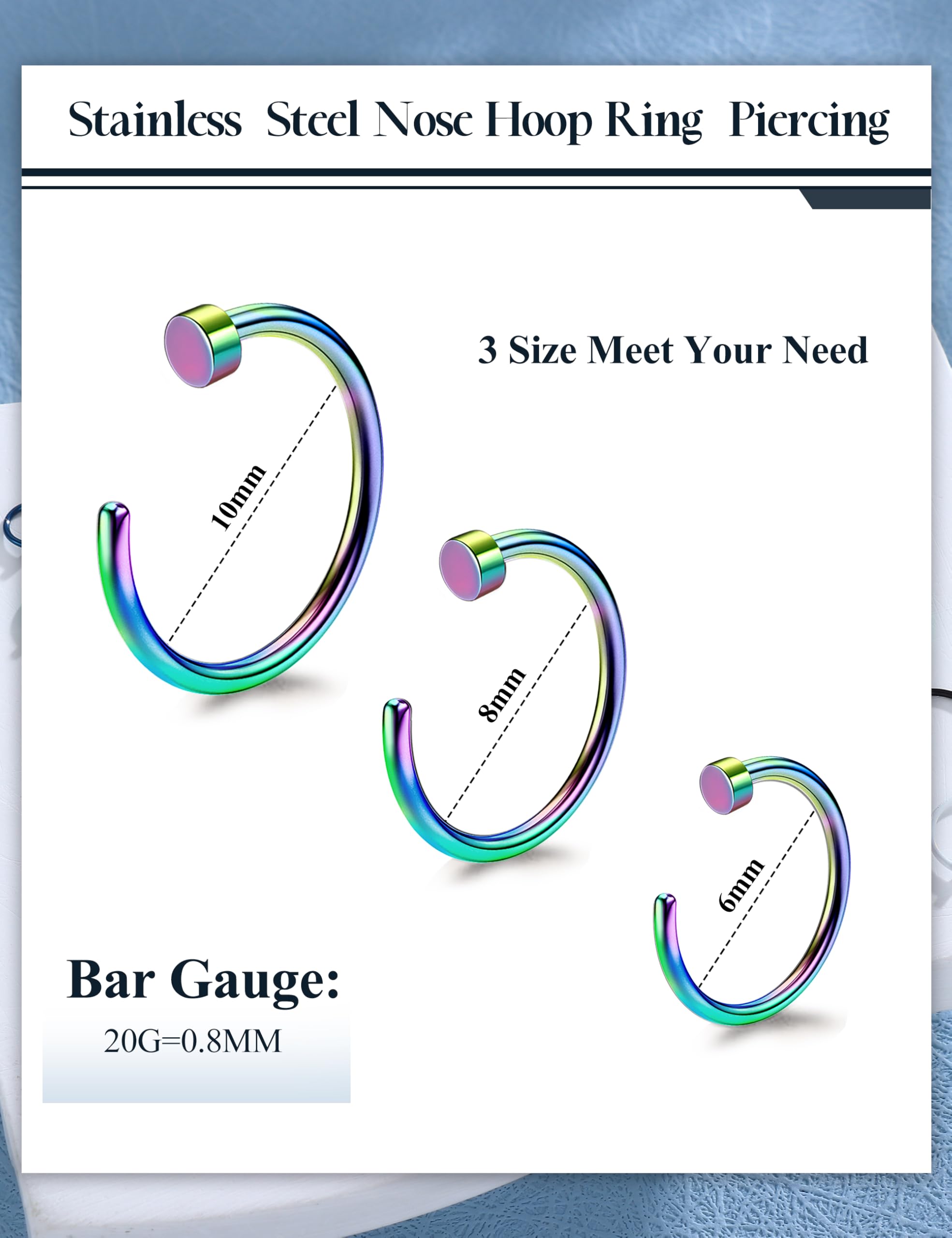 MATERIAL: Nose hoop earrings are made of 316L stainless steel, sturdy and durable, highly polished, smooth surface, long-lasting color, safe and comfortable for sensitive skin to wear