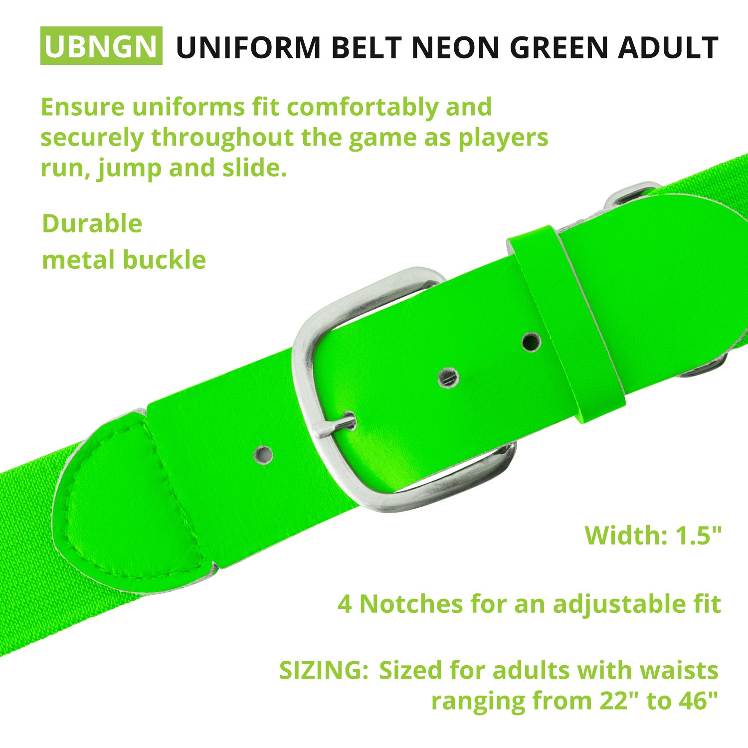 Ensure your uniform stays put with the Champion Sports Uniform Belt. Designed for versatility, this belt features an adjustable elastic band that stretches to fit youth and adult waists. A sturdy metal buckle and leather tab offer lasting durability, while the 1.5" width provides a clean, professional look. Choose from a wide range of colors to perfectly match your team's uniform.