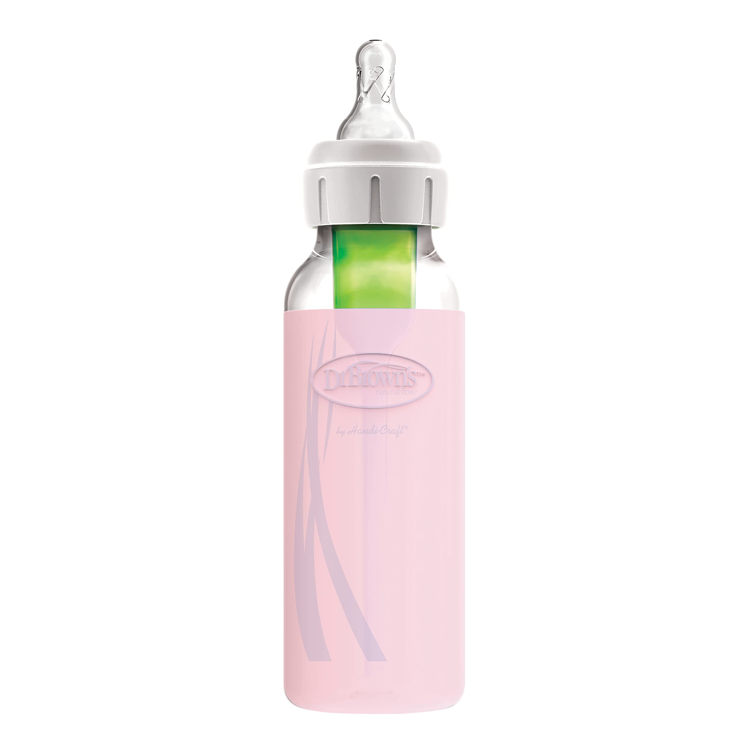 GLASS BABY BOTTLE. Sleeves come in sizes for Dr. Brown’s 4 oz, 8 oz, 5 oz, and 9 oz glass bottles.