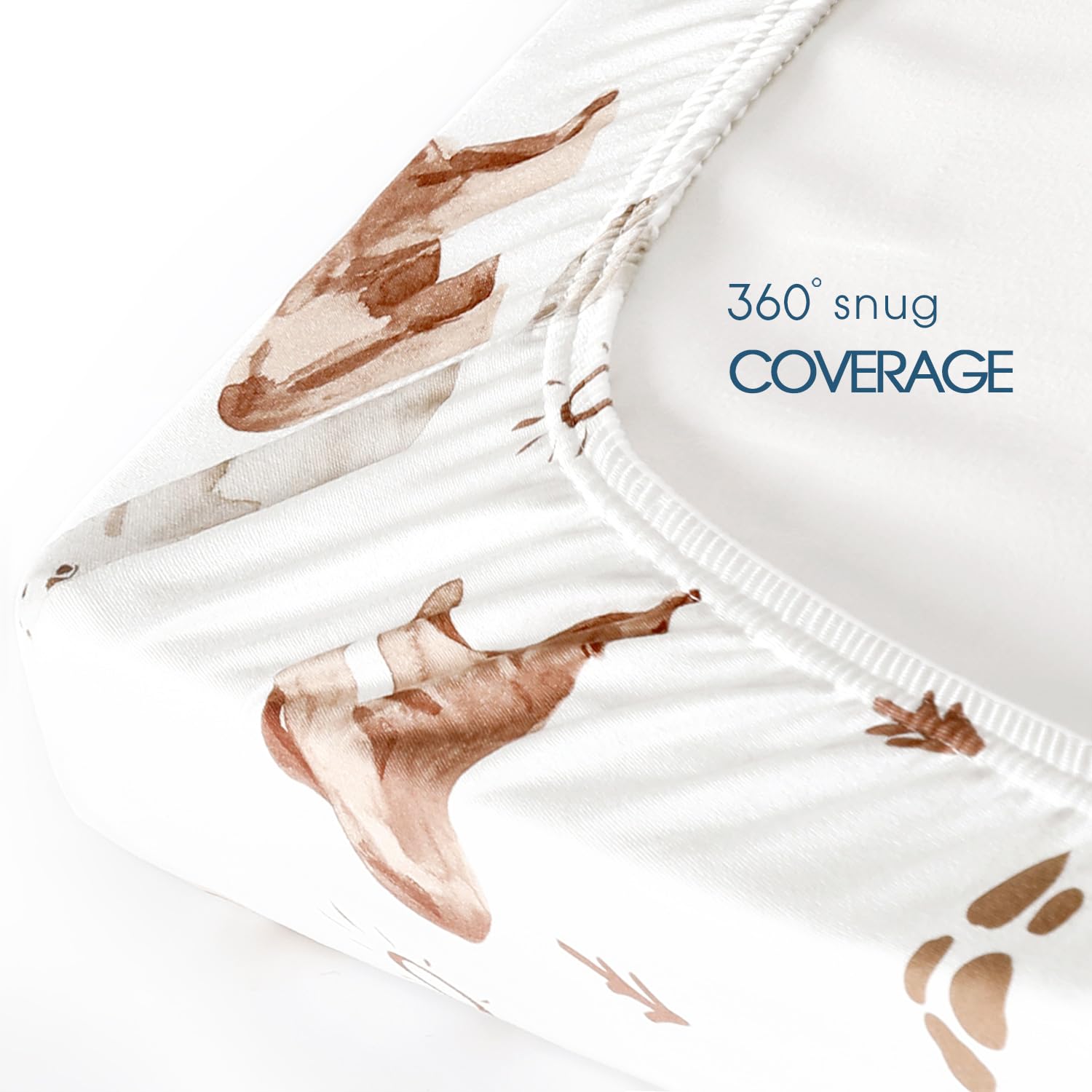 Ultra Soft & 4-way Stretch: Made of 100% high quality soft stretchy jersey knit fabric. GRSSDER mini crib sheets offer a breathable, sweat-absorbent tee shirt like feel for exceptional comfort, providing your little ones a safe and to stay in place throughout the day.