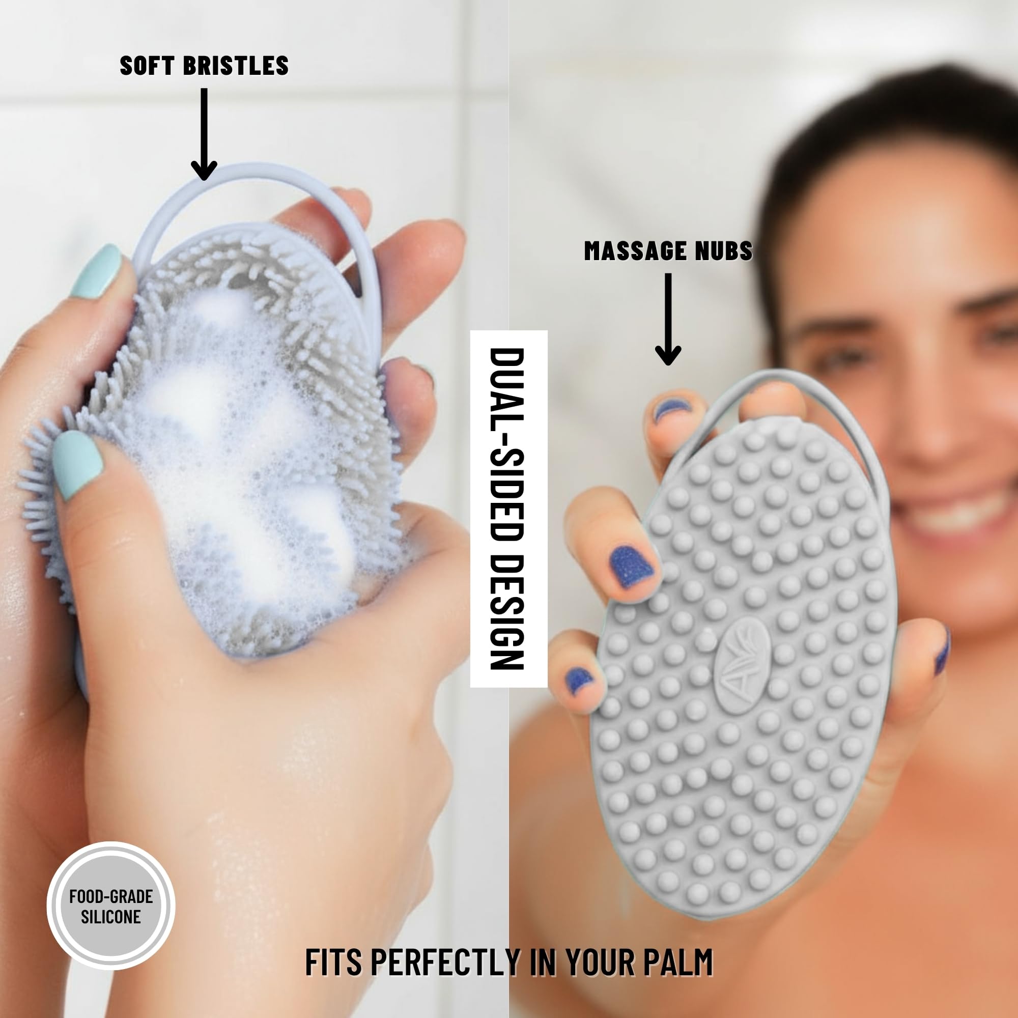 ★ ERGONOMIC COMFORT DESIGN - Perfectly sized to fit in your palm with easy-grip handle for complete control even with wet, soapy hands. Integrated hanging loop ensures proper drying between uses. Gentle enough for facial cleansing yet effective for full body care