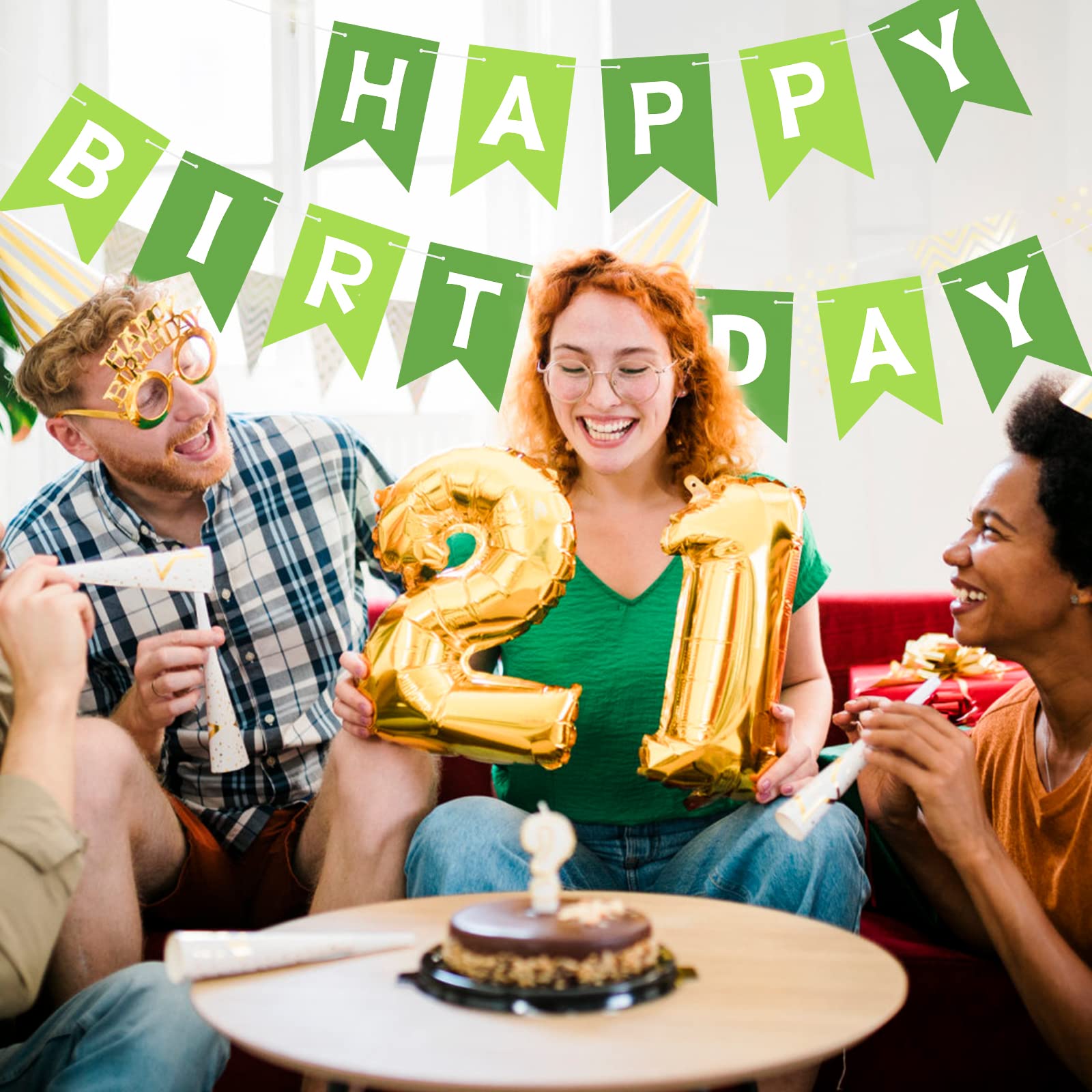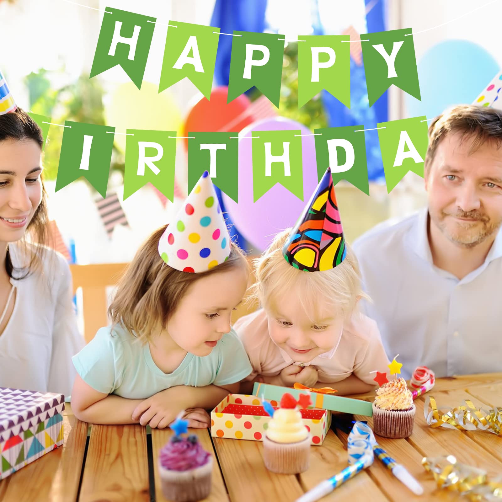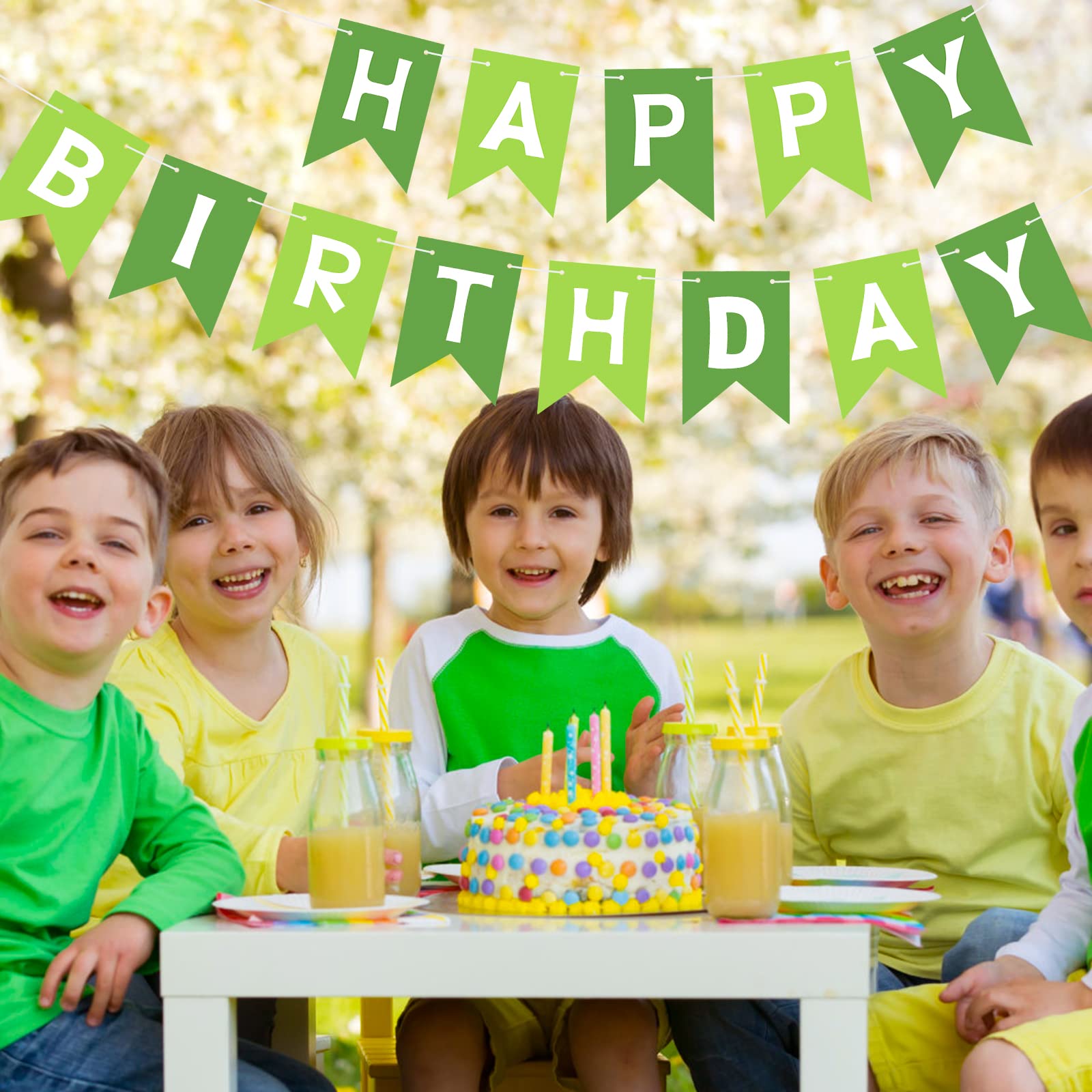 HIGH QUALITY: Made of high-quality ECO-Friendly paper, resistant and reusable. Lovely and lively colors add luster to the space decoration. Happy birthday, banner green easily fits any wall, fireplace, gift table, buffet table, garden, living room, family room, banquet hall, indoor or outdoor.