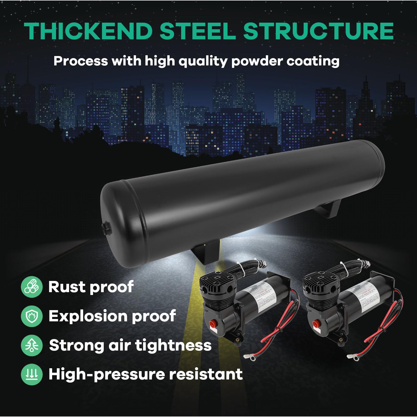 Full Protection: The air tank with Rust proof black powder coating and precision welded for maximum protection and durability.