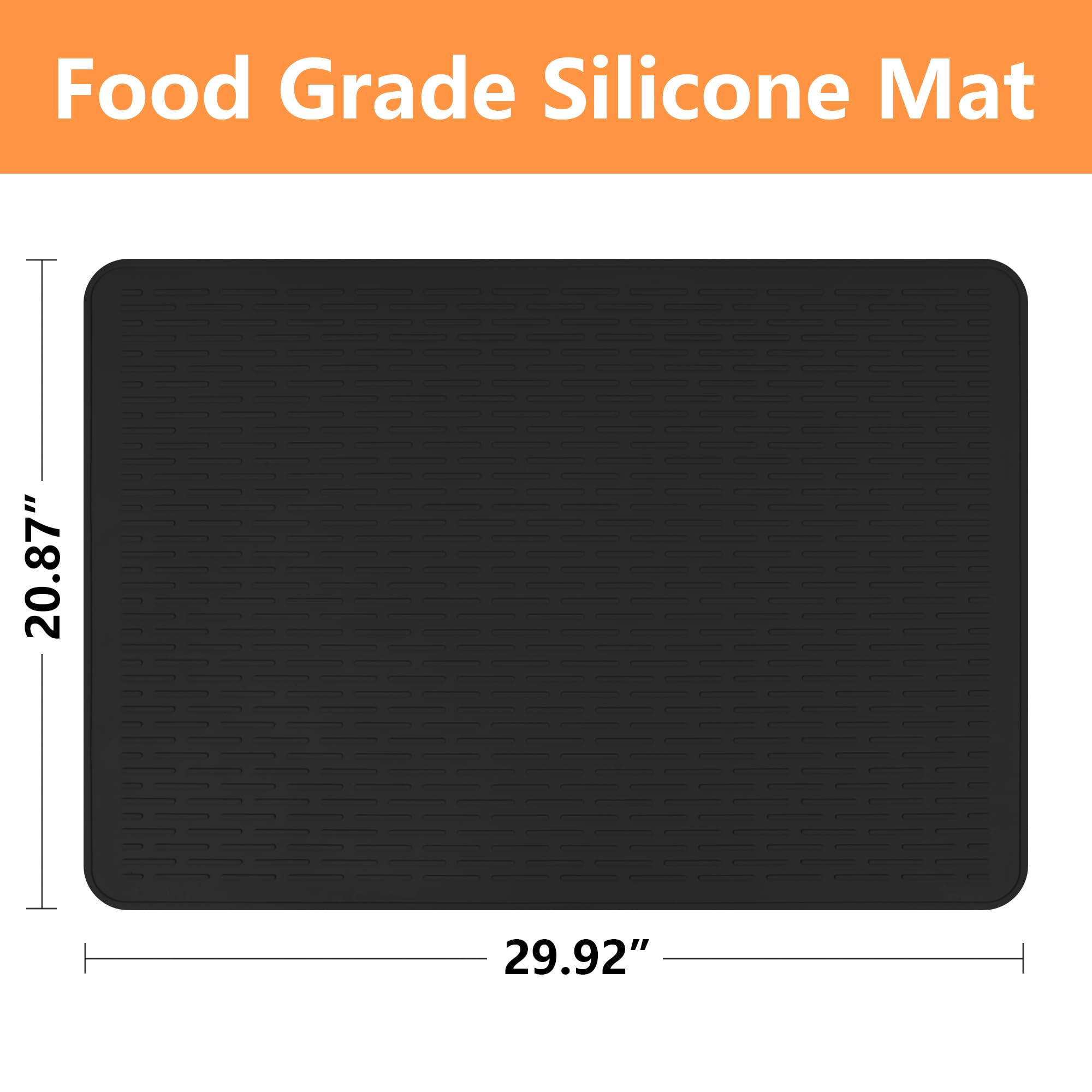 Kitchen Drying Mat:The unique design of wide raised line ridges increases air circulation, improves ventilation, and catches drips from dishes, glasses, fruits, and vegetables. The high edges and waterproof bottom keep the countertop dry and clean, making it an ideal kitchen drying mat.