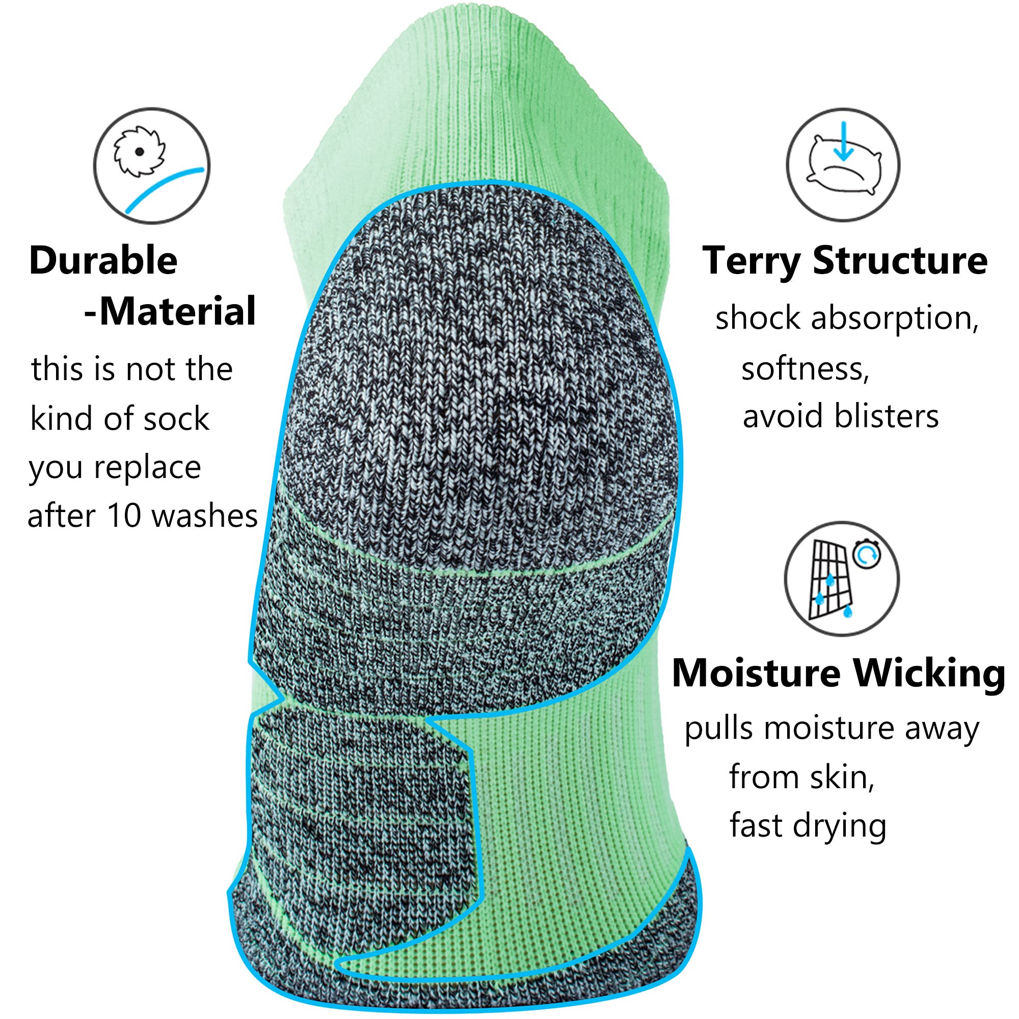 UNIQUE SOLE: Moisture wicking and durable fibers, pull moisture away from skin; With cushion, soft and comfy, shock absorption; Design LEFT AND RIGHT SOCKS according to the plantar structure