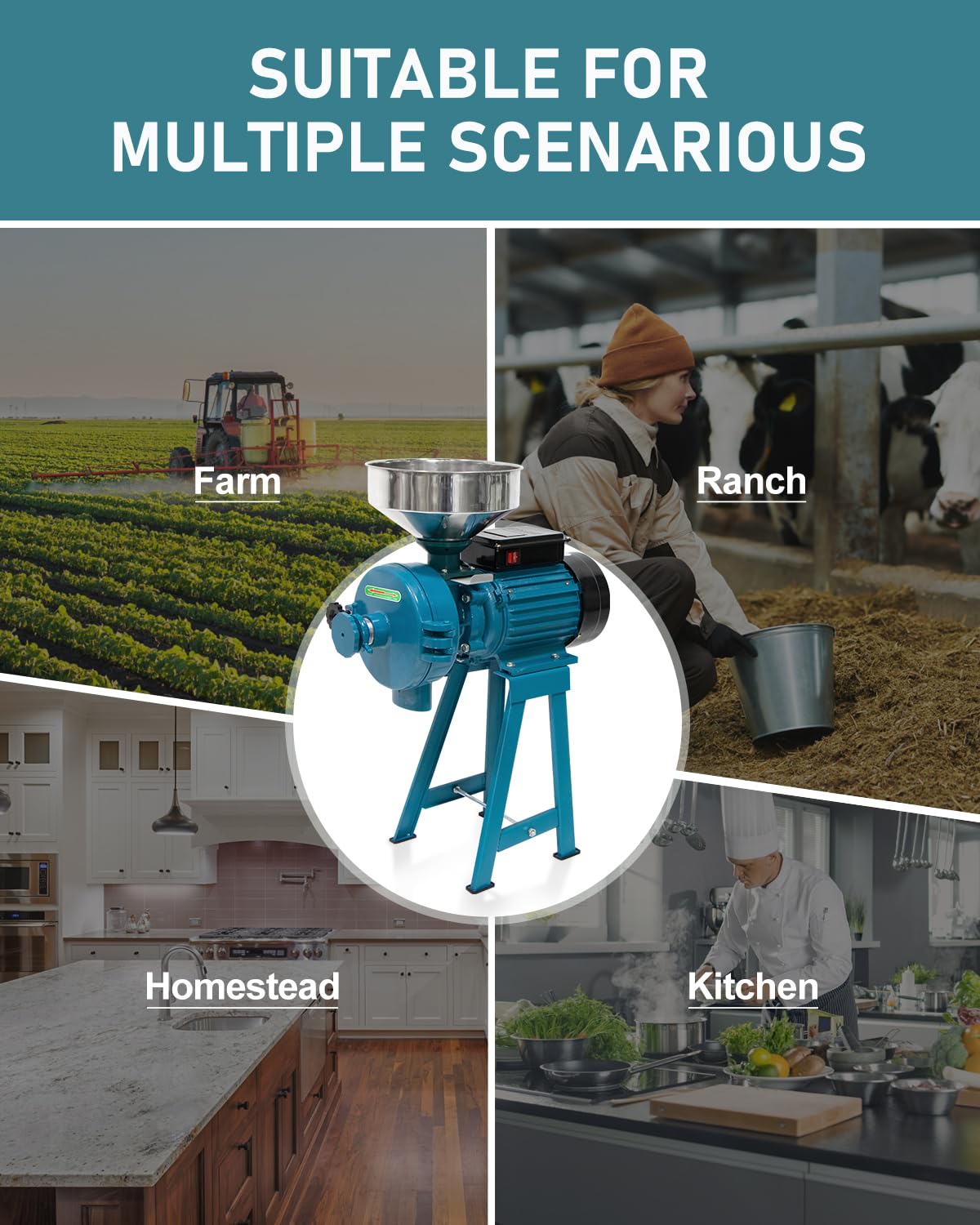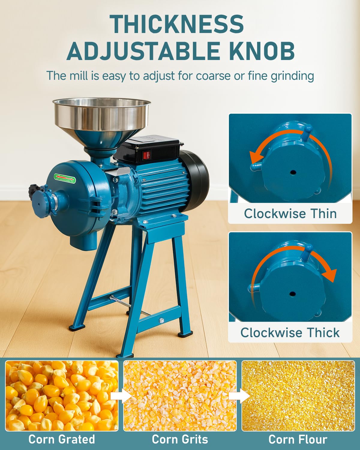 All-in-One Dry & Wet Grinder for Multiple Uses:Why buy separate machines? This versatile mill grinds dry grains like wheat, corn, soybeans, and rice, and also handles wet grinding for soaked soybeans or riceβperfect for making soy milk, rice paste, and traditional foods. Also great for crushing animal feed