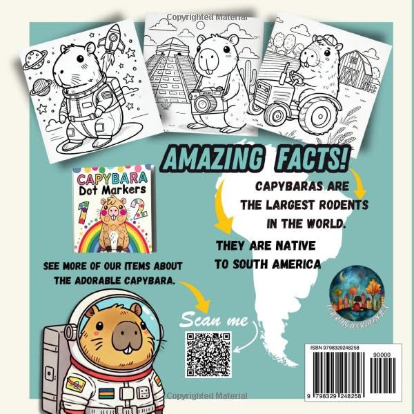🎨 Engage, Color, and Learn! 🎨 Dive into the delightful world of capybaras with our Capybara Coloring Book! This charming coloring book is perfect for both children and their caregivers. Each page is filled with beautiful, funny, simple, and cute illustrations that are sure to engage and entertain. 🔹 40+ Amazing Facts: Alongside each coloring page, discover fascinating facts about these incredible creatures. Learn together and explore the amazing world of capybaras! 🔹 Perfect for Small Hands: This large, square book is designed to be easy for little hands to hold and color. 🔹 No Bleed-Through: Every coloring page is followed by a fact page, ensuring that no illustrations bleed through to the next one. Color without worry! 🔹 High-Quality Illustrations: Beautiful, funny, and engaging illustrations make coloring a joyful experience. 🔹 Great for Bonding: Spend quality time with your children while learning amazing facts about capybaras. Perfect for parents, grandparents, and caregivers. 📚 Explore More: Check out our other fantastic books to continue the fun and learning! ✨ Get Your Copy Today! ✨ Don't miss out on this wonderful opportunity to engage, educate, and entertain. Click "Buy Now" and add a splash of color to your child's life with the Capybara Coloring Book! 🌟 Why You'll Love It: Fun and Educational: A perfect blend of creativity and learning. Perfect Gift: Ideal for birthdays, holidays, and any special occasion. Family Bonding: Great for spending quality time together. ✨ Order Your Copy Today and Discover the Joy of Coloring with Capybaras! ✨