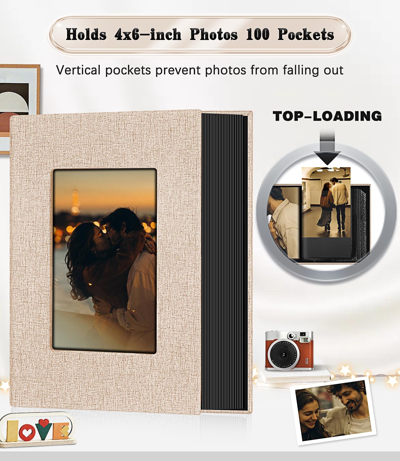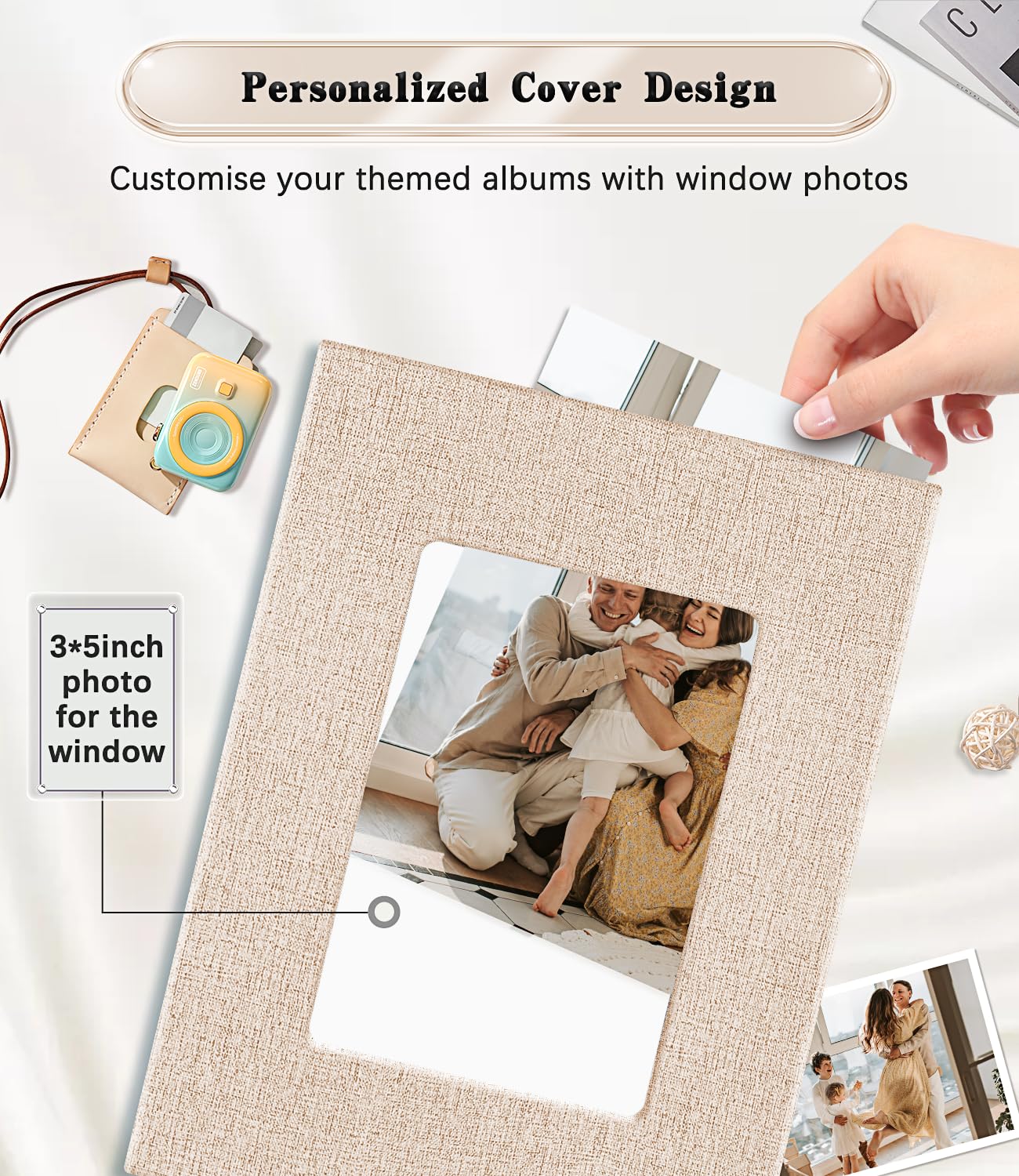 💖 Exquisite Window Design: This 4x6 photo album cover is wrapped in high quality linen, the classic linen cover not only adds vintage sophistication, but also ensures durability and protects your precious photos.The cover of the album has a flexible openable window with replaceable window photos (3*5 inch), customised to change your personal theme album.