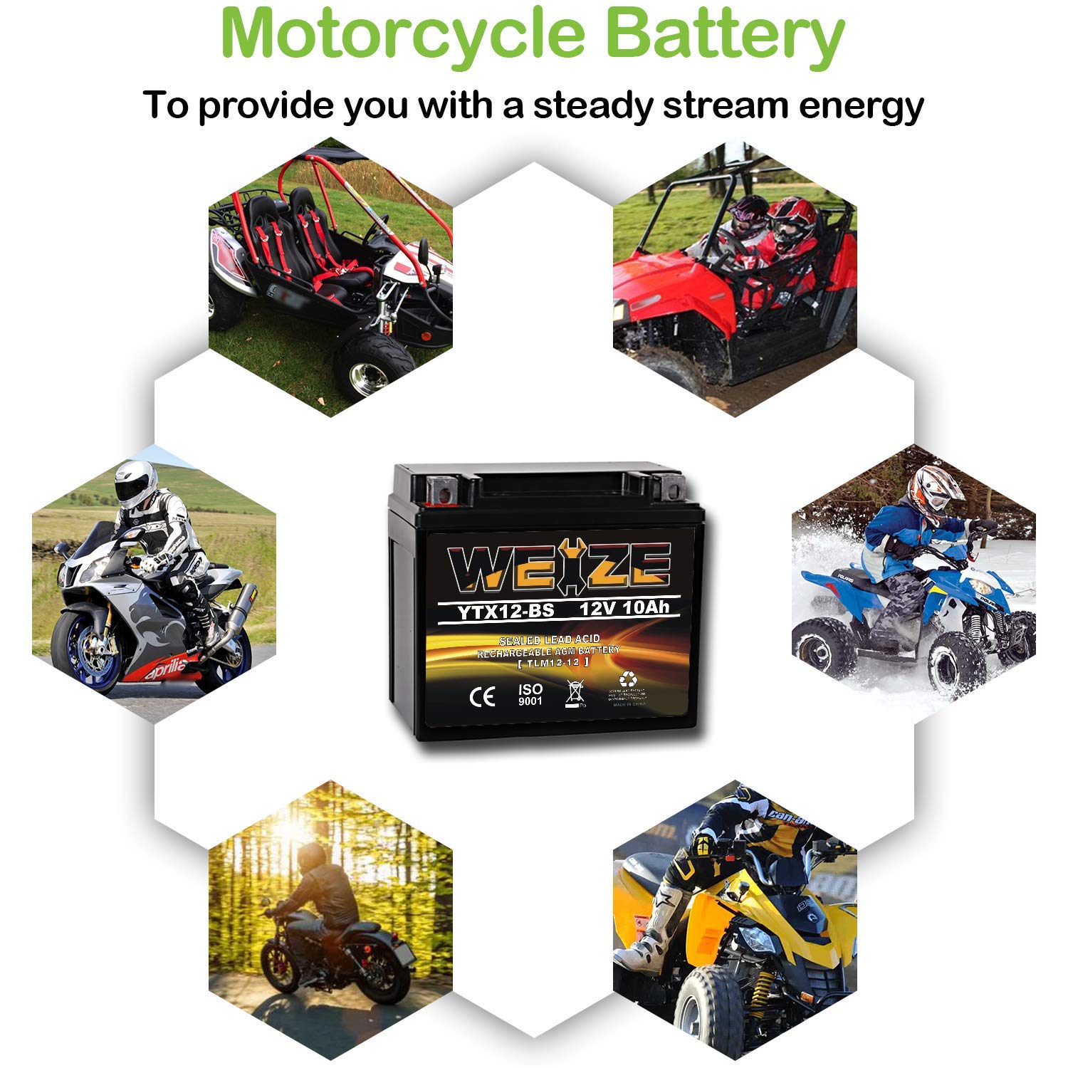 Scooter battery compatible with Aprilia Scarabeo Sport City,Honda CH250 Elite,Kymco People 250,Xciting 250i 400i,Piaggio BV350 ABS,Piaggio-Gilera,SYM RV250,UTV battery for Polaris RZR, 12 Months Warranty,We aim for quality followed up with quality customer service, Amazon doesn't deal with the return of battery-related products, so please contact the seller directly. Weize support team is on standby for YOU.