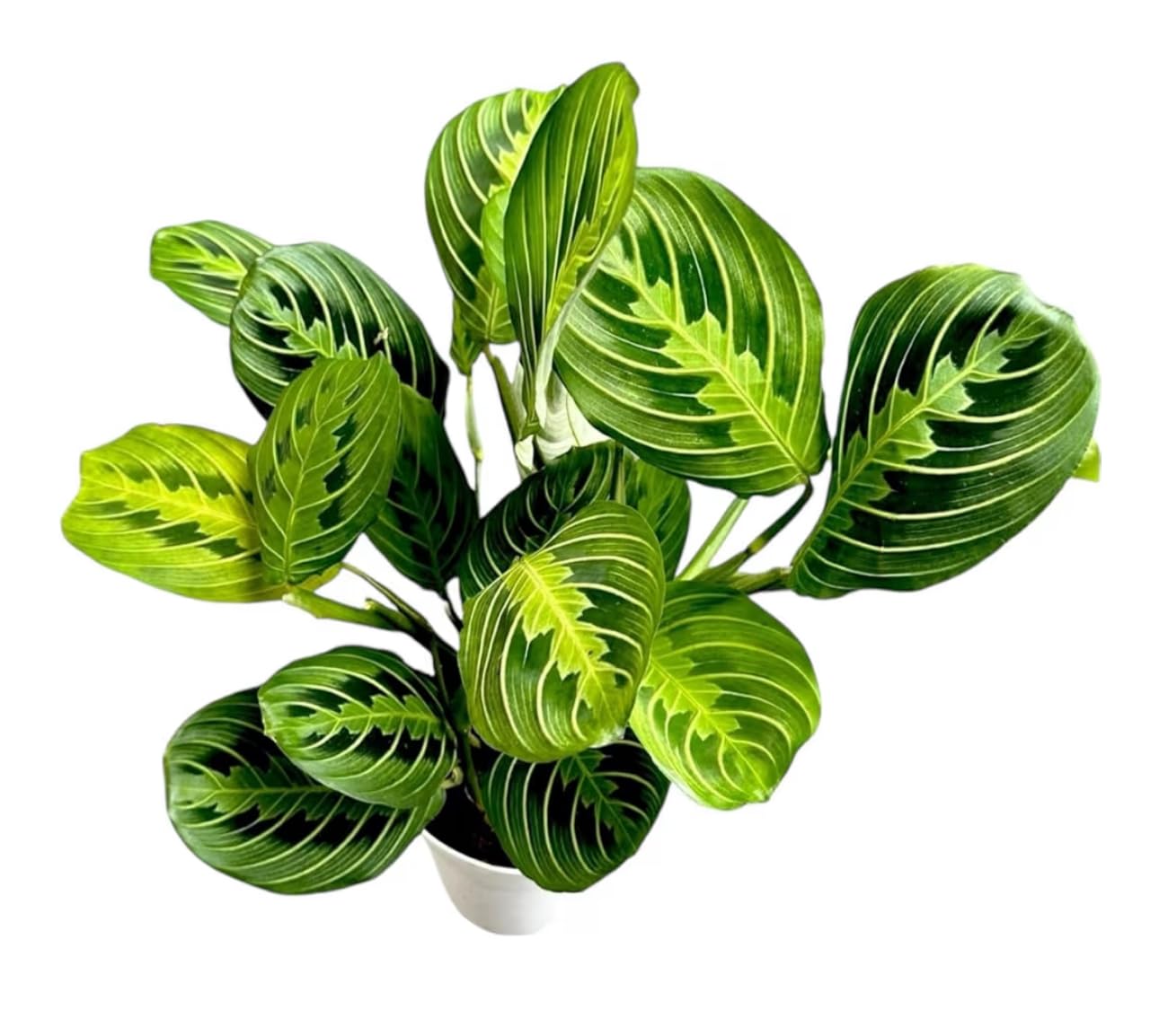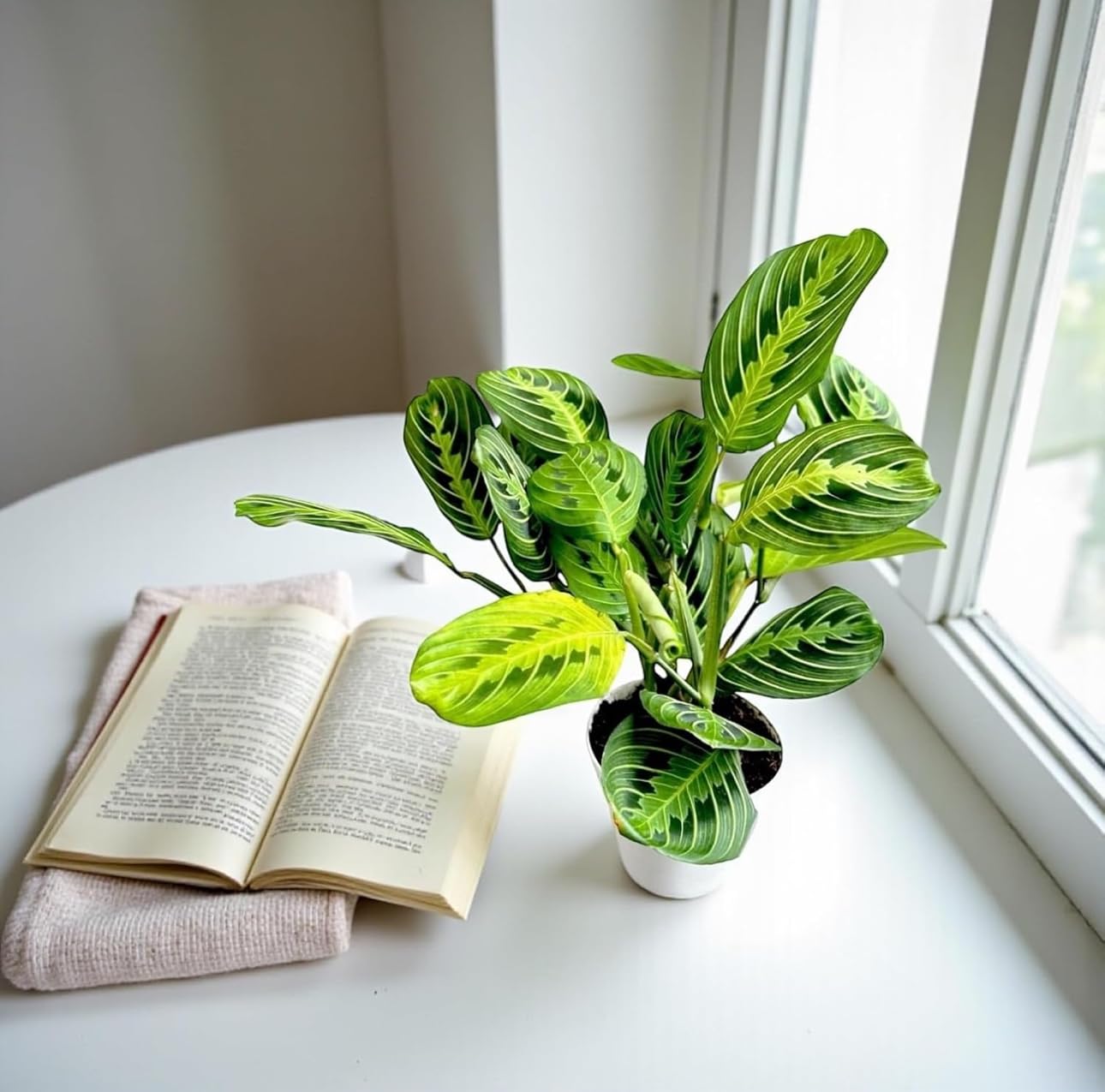 LIVE INDOOR PLANT -Bring home the stunning Lemon Lime Maranta Prayer Plant and enjoy a touch of tropical calm. With its vivid green leaves brushed with yellow and dark-green veins, this houseplant brings instant warmth and charm to any room. Watch as its leaves fold upward at night like praying hands — a living rhythm of peace and nature.