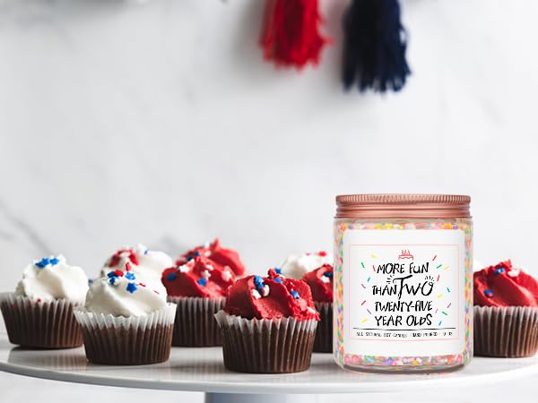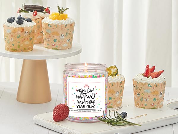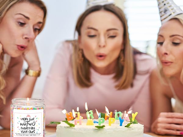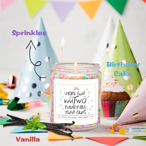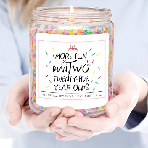 𝗛𝗮𝗽𝗽𝘆 𝗕𝗶𝗿𝘁𝗵𝗱𝗮𝘆 𝗖𝗮𝗻𝗱𝗹𝗲𝘀: The funny gifts with the saying"MORE FUN THAN TWO TWENTY-FIVE YEAR OLDS", to express your love for friends and family, for them to create a warm and happy birthday atmosphere. Try this birthday candle gift! Memorable birthday gifts will make her feel loved all the time.Happy birthday gifts for women and men. A surprise birthday candle
