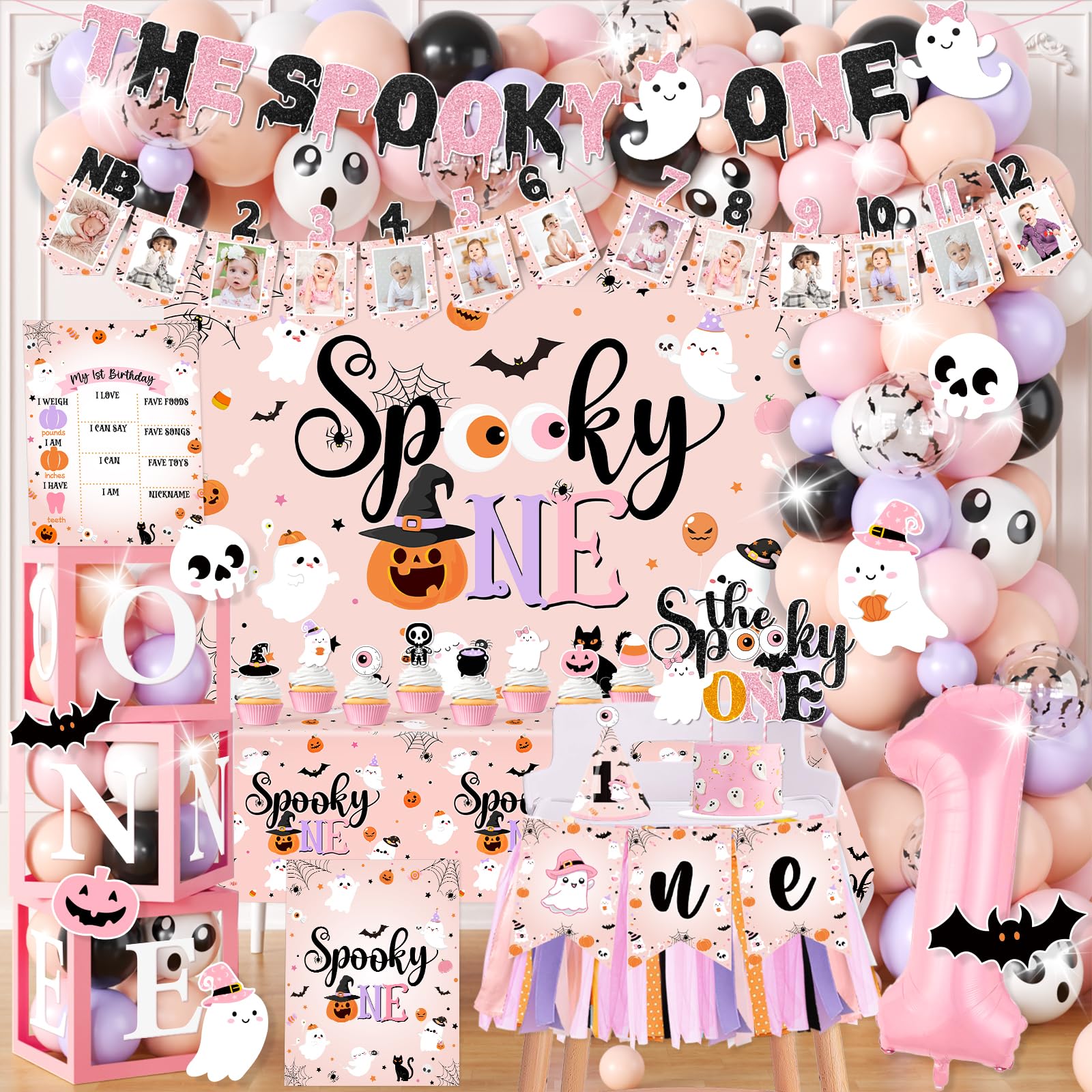 【Multipurpose】Our Pink Halloween tableware can be used for Halloween Spooky One birthday parties, Halloween baby shower decorations, Halloween girl parties, ghost themed parties, etc. They can also be paired with Halloween Spooky One party bags and Halloween 1st birthday photography backgrounds.