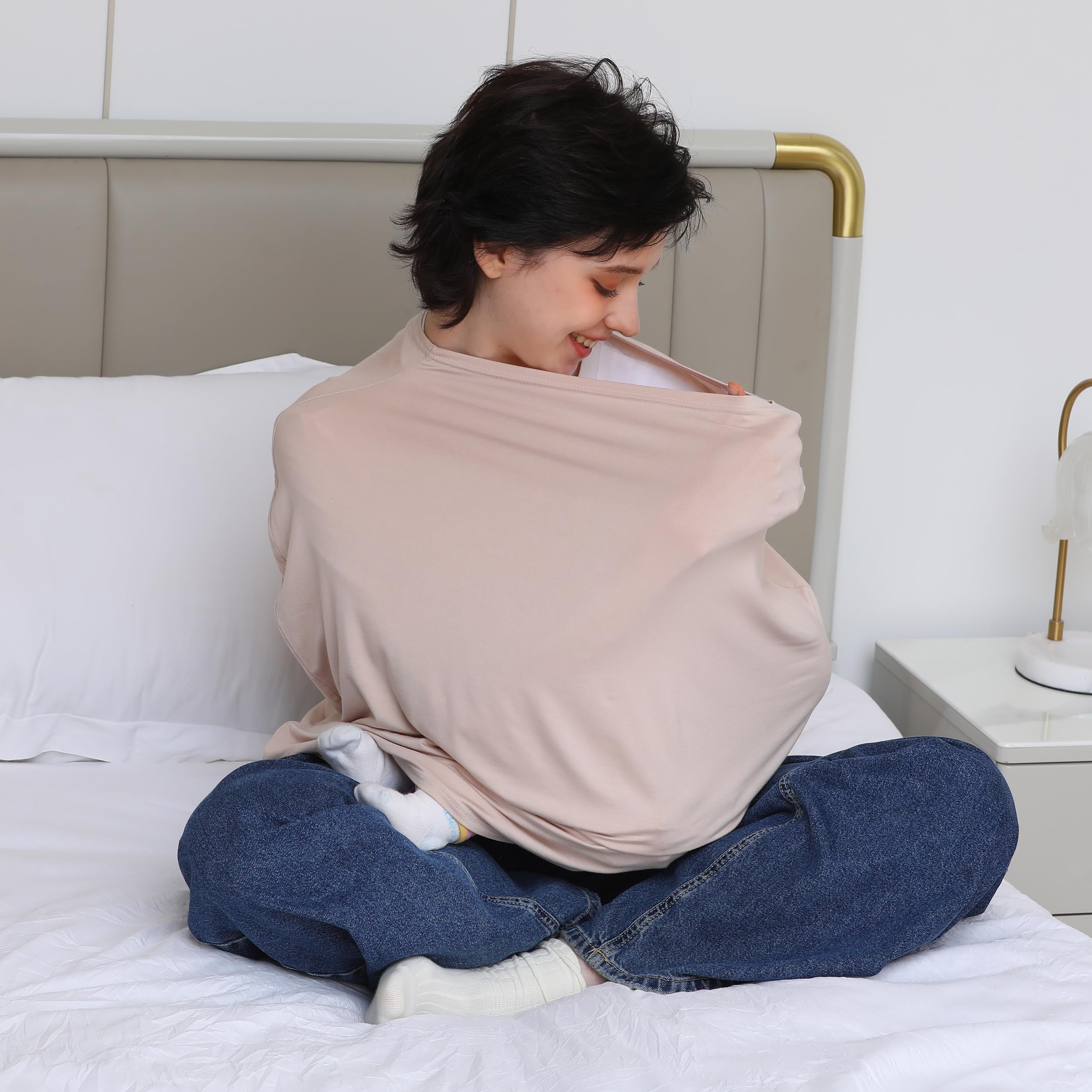 QUICK INSTALLATION & ACCESS: Our multi-use nursing cover made of stretchy fabric and designed to tubular shape, allows quick installation and access with no need for button.