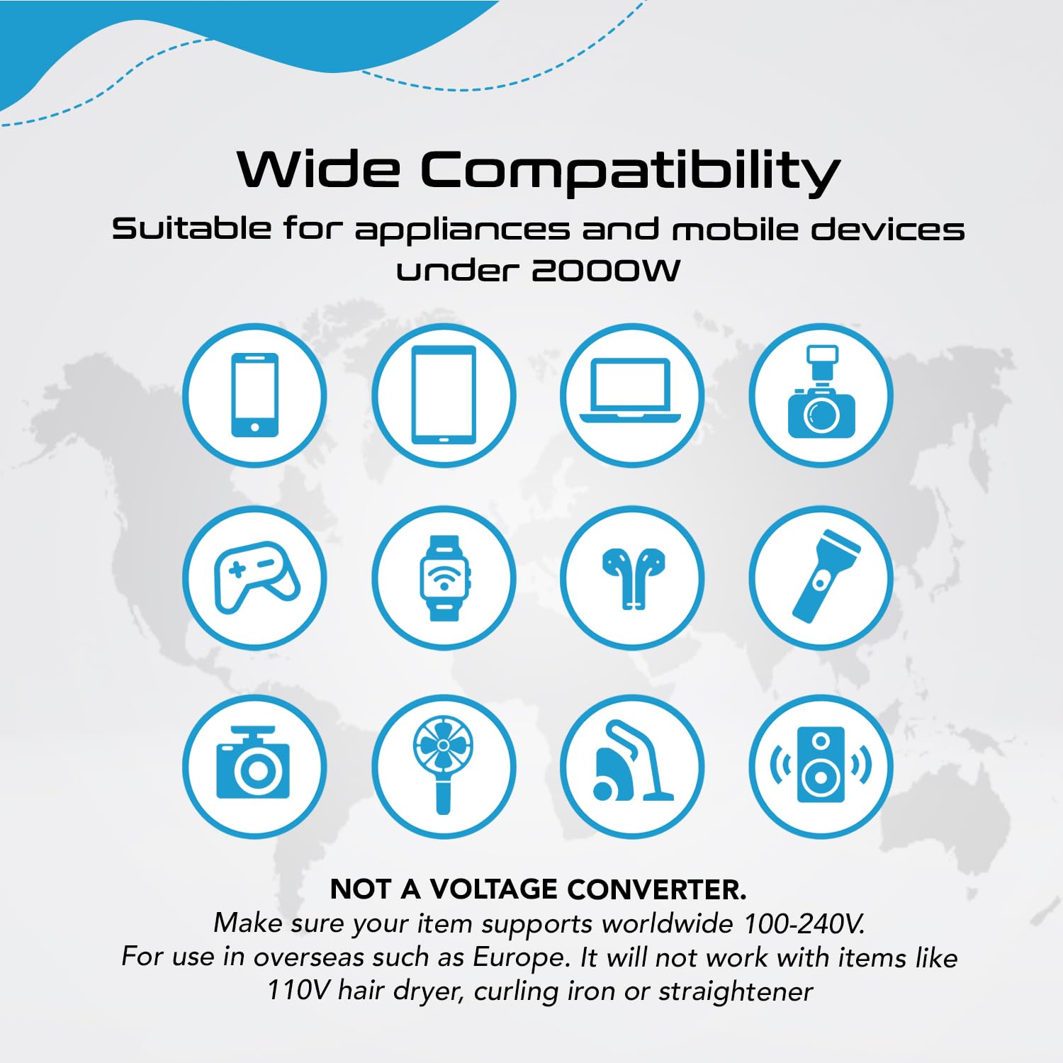 ***Important note This adapter is not a voltage converter It will not convert voltage make sure your item Supports worldwide 100-240V for use in overseas such as Europe It will not work with items such as 110V hair dryer curling iron or straightener Full Ceptics Support Contact us for any questions