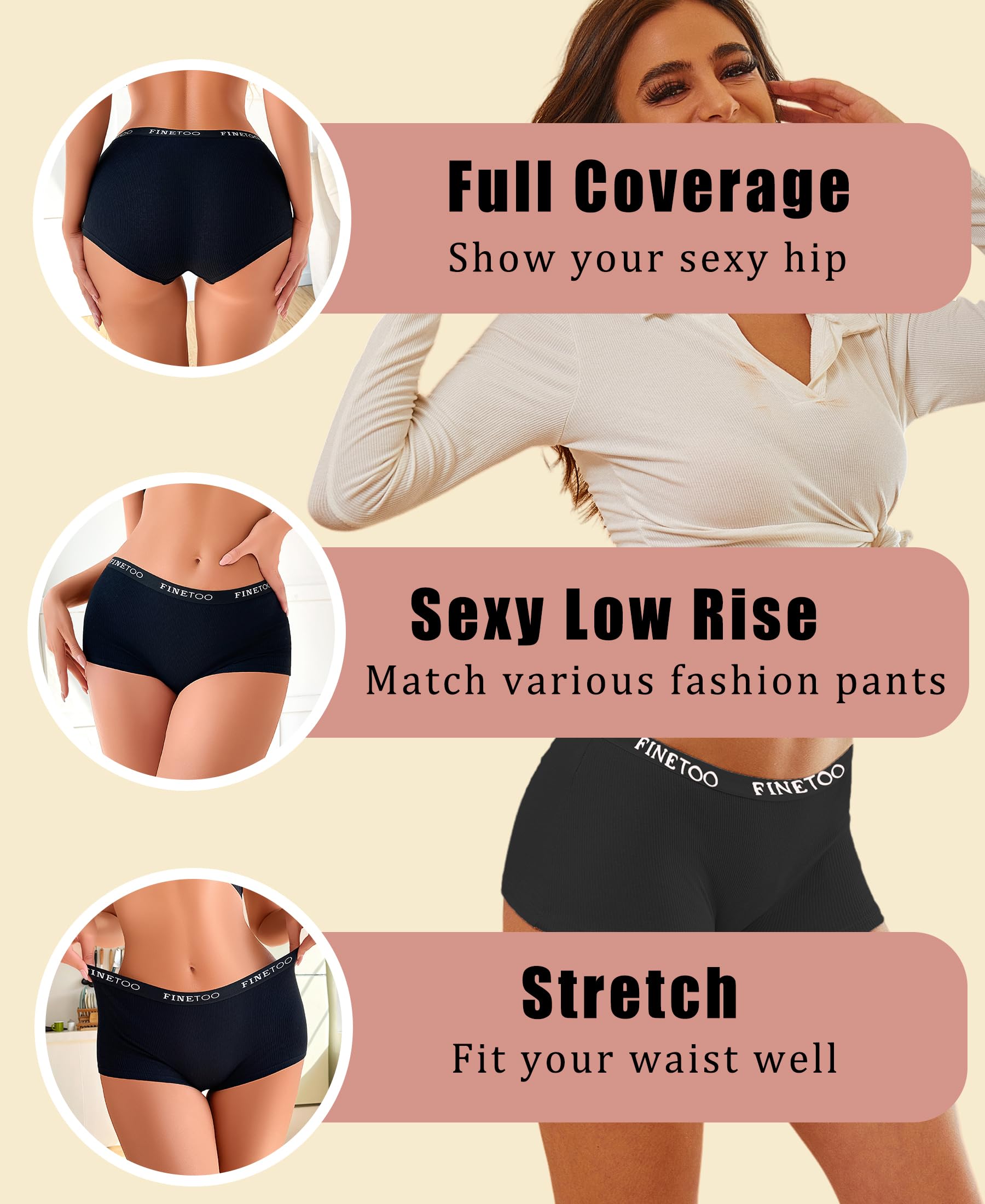 Classic womens underwear:Cotton panties with stretch FINETOO logo waistband,stay at your waist well. The belt doesn't shrink after washing.