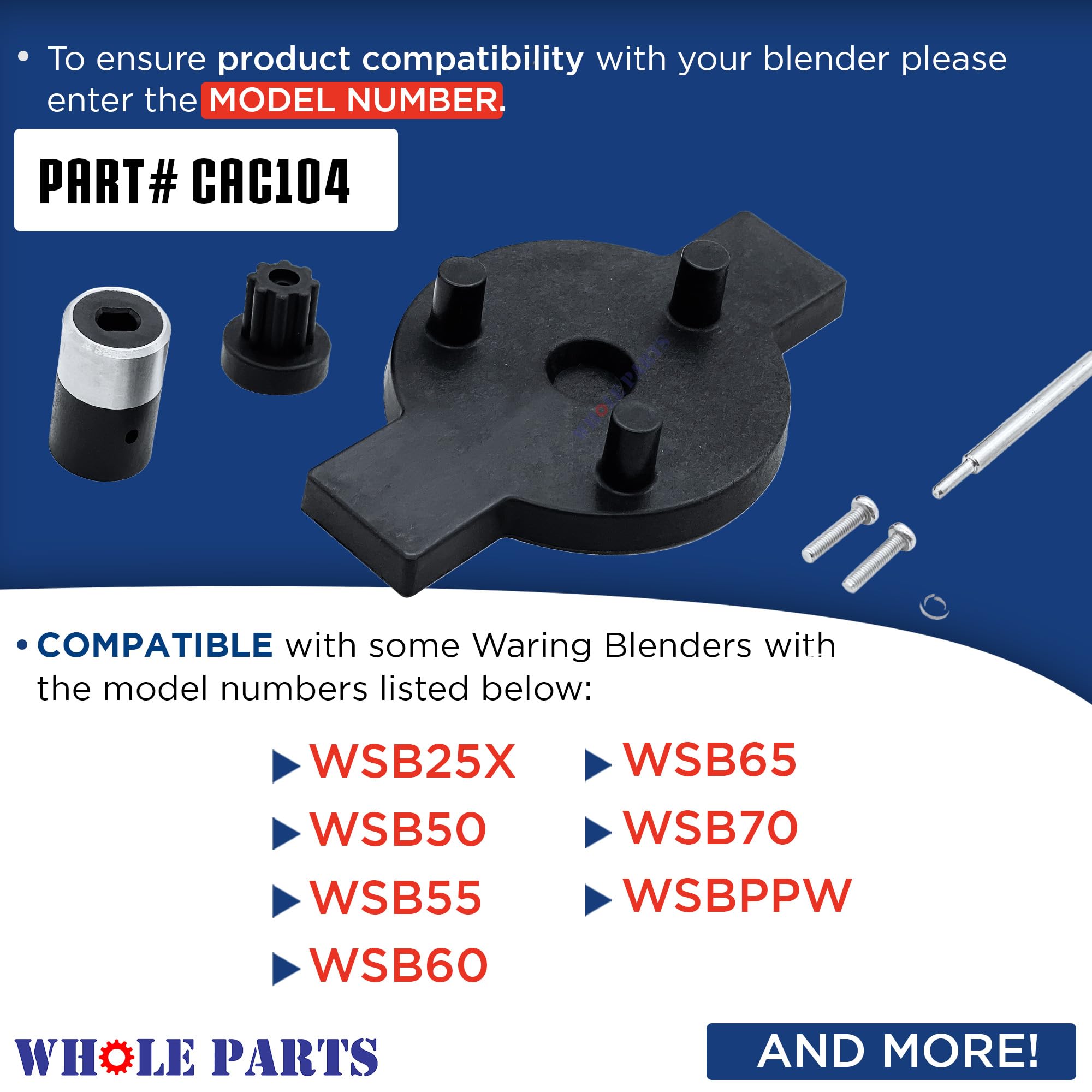 New CAC104 Big Stix Immersion Blender Coupler Replacement Kit for Waring . Compatible with (but not limited to) the following models: WSB25X, WSB50, WSB55, WSB60, WSB65, WSB70 and WSBPPW.