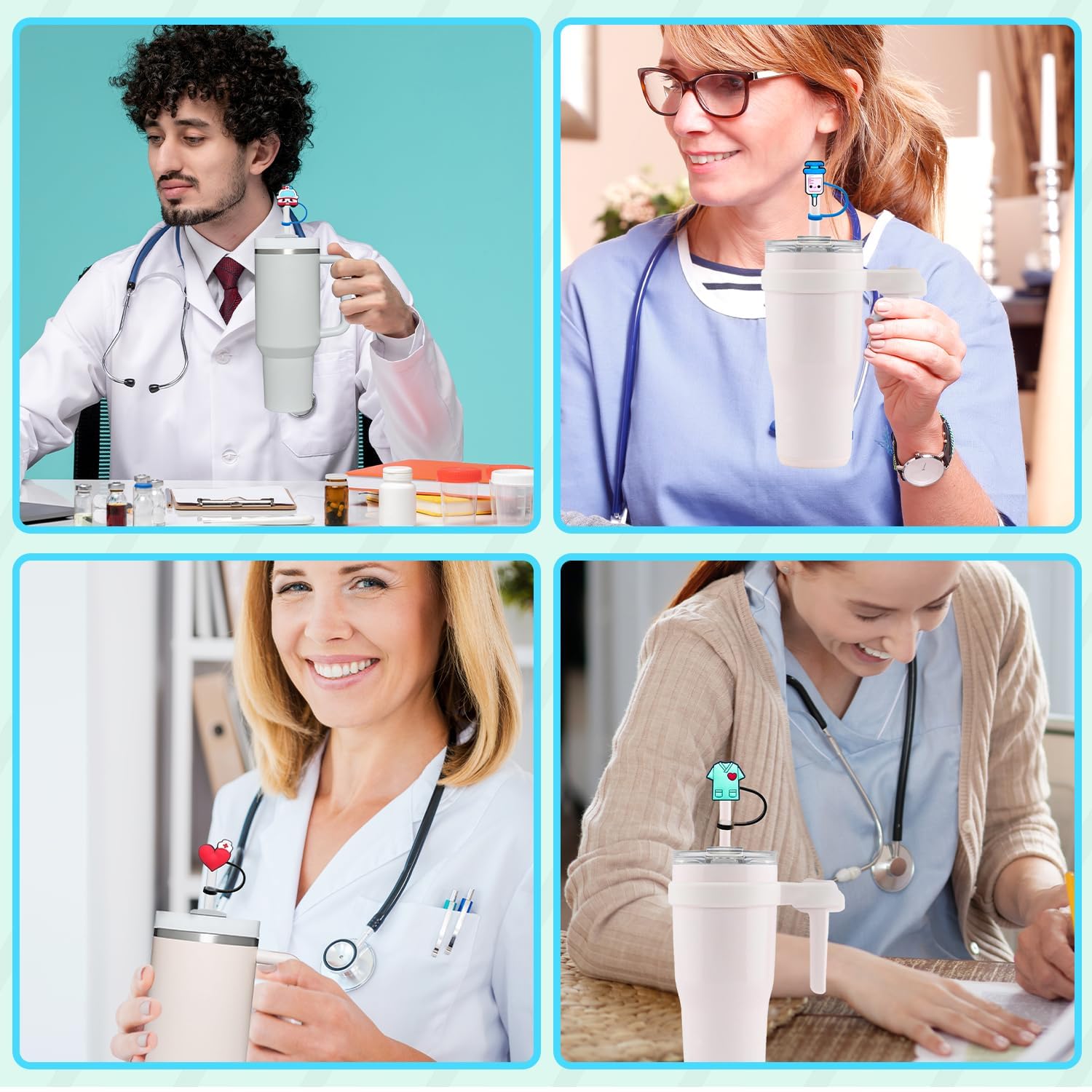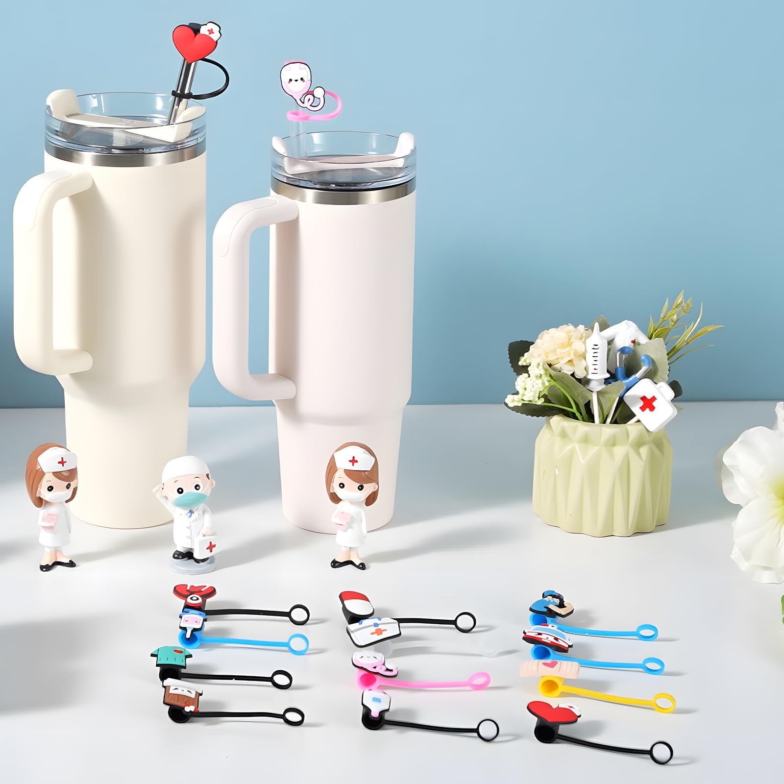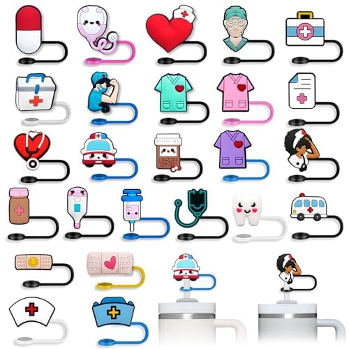 Nurse Accessories for Work: The set of 50 nursing-themed straw lids come in an adorable design to decorate most straws and are suitable for nurse gifts