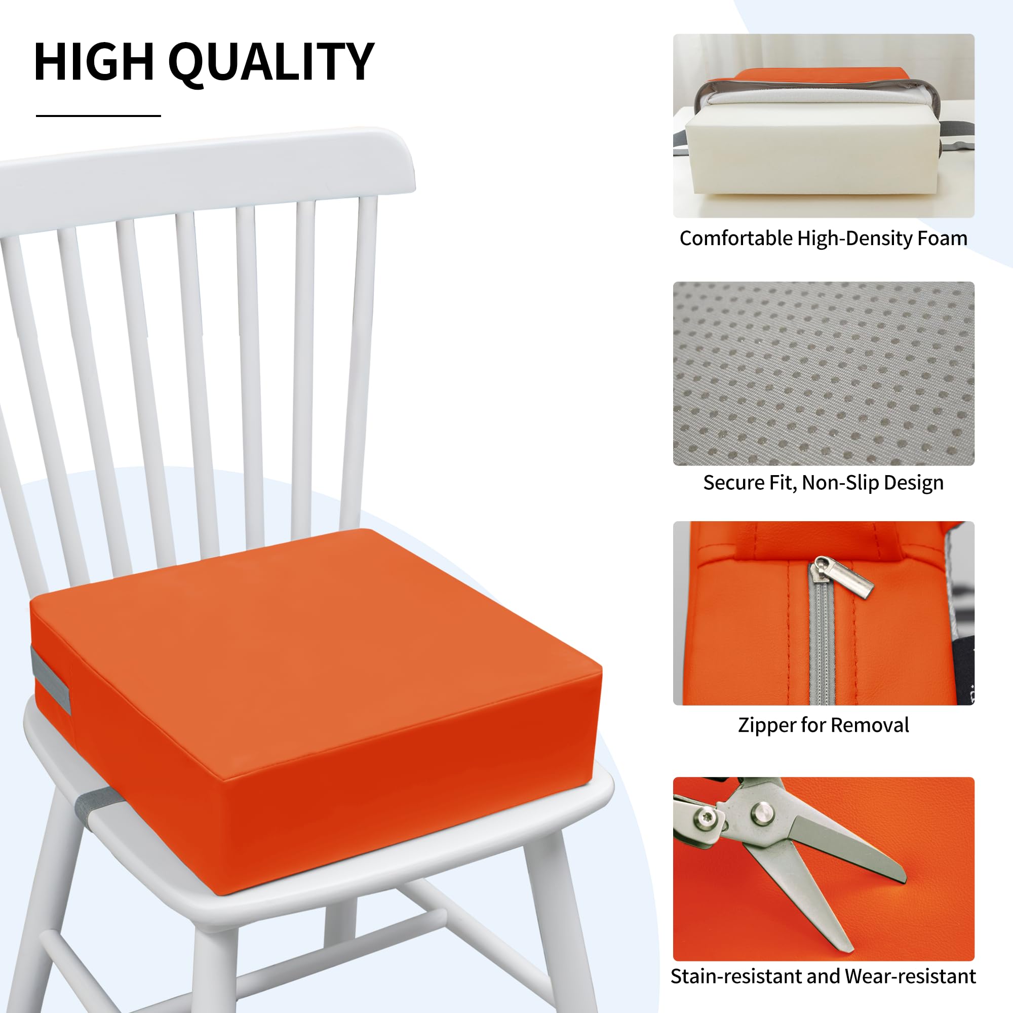 Eiury Toddler Booster Seat Dining Table Kitchen Chair, Waterproof Anti-Scratch PU Cushion, Non-Slip Bottom, Adjustable Buckle Straps, Easy Clean Portable Seat Cushion (Tangerine)