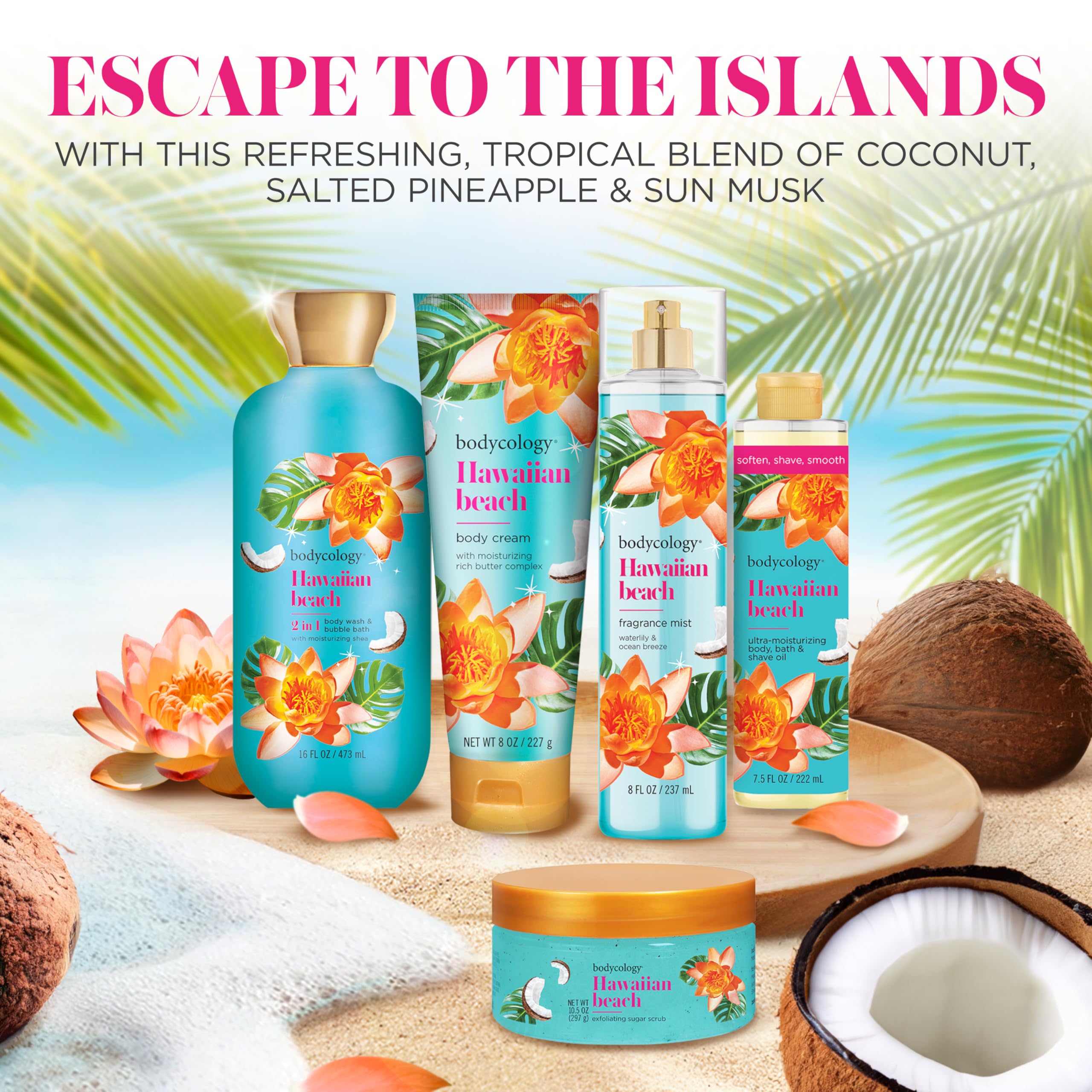 Take your get-ready routine to the next level with fruity and floral coconut, salted pineapple, and water lily when you moisturize with Bodycology Hawaiian Beach Body Cream. Your skin will thank you for using our ultra-hydrating and non-greasy formula shea butter, cocoa butter, and jojoba oil. When you lather your skin in our Hawaiian Beach Body Cream, you’ll surround yourself in a bouquet of peony and water lily along with the sweet allure of mango and fragrant peony, with base notes of sun musk to round it out. Step into a world of fragrant peonies and water lilies that ends with sensual driftwood, cedarwood and sun musk. Use this fragranced cream as a form of special self-care or make it a part of your daily beauty ritual. You can layer this scent with the Bodycology beauty products you love like the matching Hawaiian Beach Fragrance Mist or with our other body sprays to create your own signature scent. All Bodycology products are paraben, phthalate, and cruelty-free.