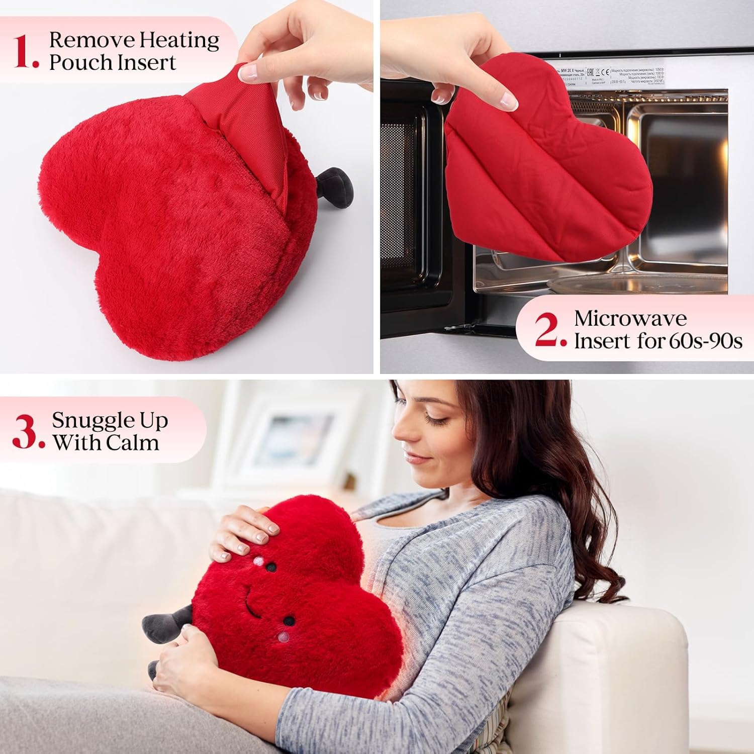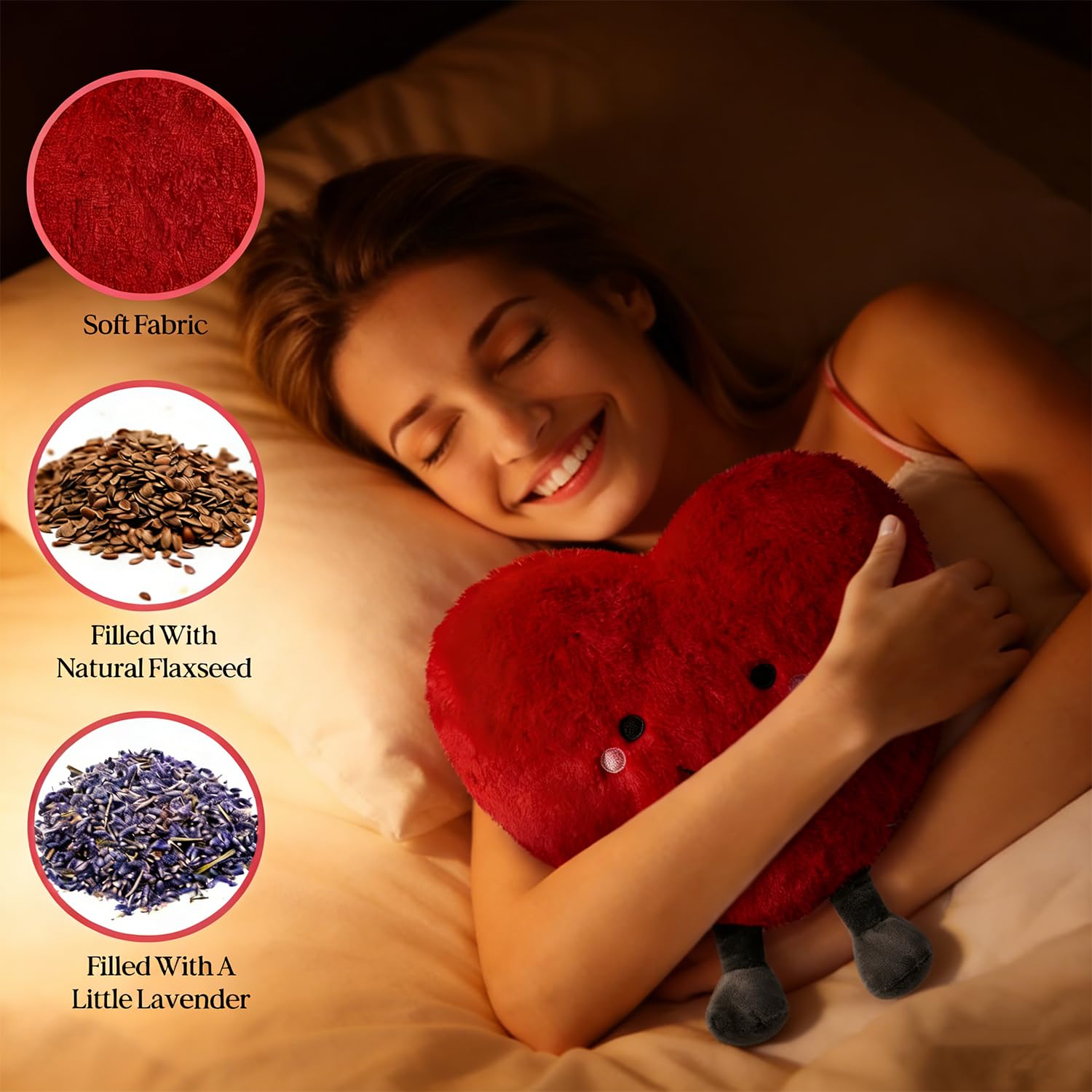 【Stress Relief Partner】: This red heart microwavable stuffed animals pillow offers comfort when you feel stressed. It's a great companion for teens and adults to ease anxiety. Its wireless design ensures safety and convenience, making it easy to take anywhere—whether you're playing, napping, soothing soreness, reading, sleeping, or traveling. It's your most thoughtful companion.