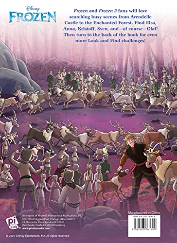 Frozen and Frozen 2 fans will love exploring magical places from Arendelle Castle to the Enchanted Forest. Search busy scenes for Anna, Elsa, Kristoff, Sven, andβof courseβOlaf! Then turn to the back of the book for even more Look and Find challenges! Look and Find play encourages focus and exploration, and provides a fun, interactive experience for young readers! This book is special because: Look and Find play encourages focus and exploration Matching and comparing are important math skills Connecting words with pictures builds vocabulary Includes wonderful Frozen 2 characters: Olaf, Anna, Elsa, Kristoff, Sven, and more!